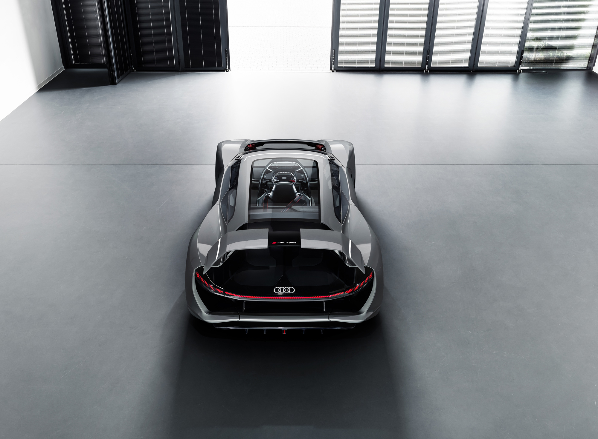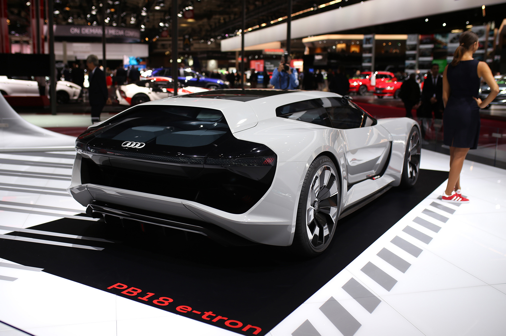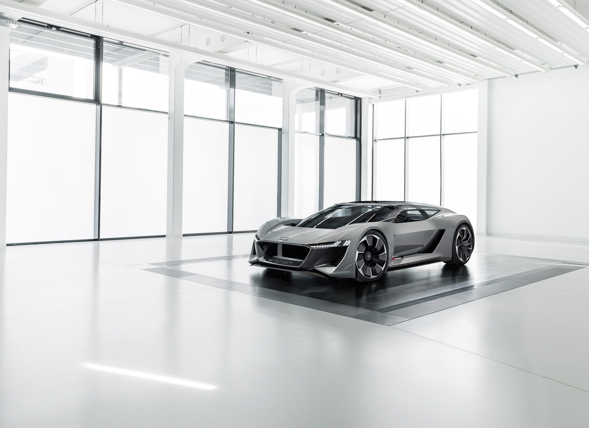 То ли спорткупе, то ли хэтчбек, то ли трёхдверный универсал, в общем PB18 e-tron, впитал опыт, полученный при разработке мелкосерийного спорткара R8 e-tron и прототипа Audi F12, череды электрических концептов вроде хэтчбека Aicon или спортивного e-tron Vision Gran Turismo, а в особенности — лемановского гибридного спортпрототипа Audi R18. Последний отмечен особо: именно от него в названии нового концепта цифра 18 (это вовсе не год), ну а PB — это Pebble Beach, место премьеры.