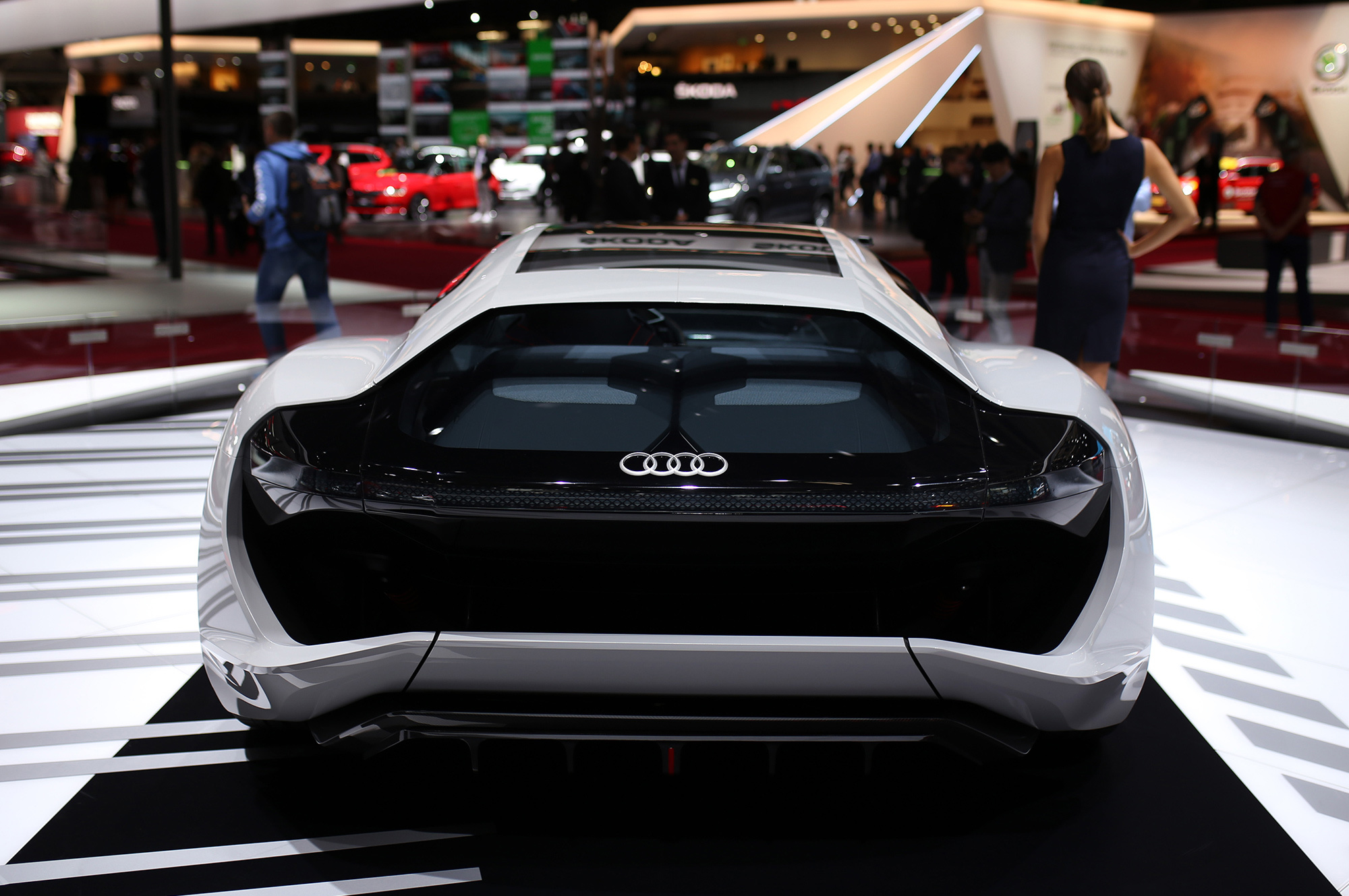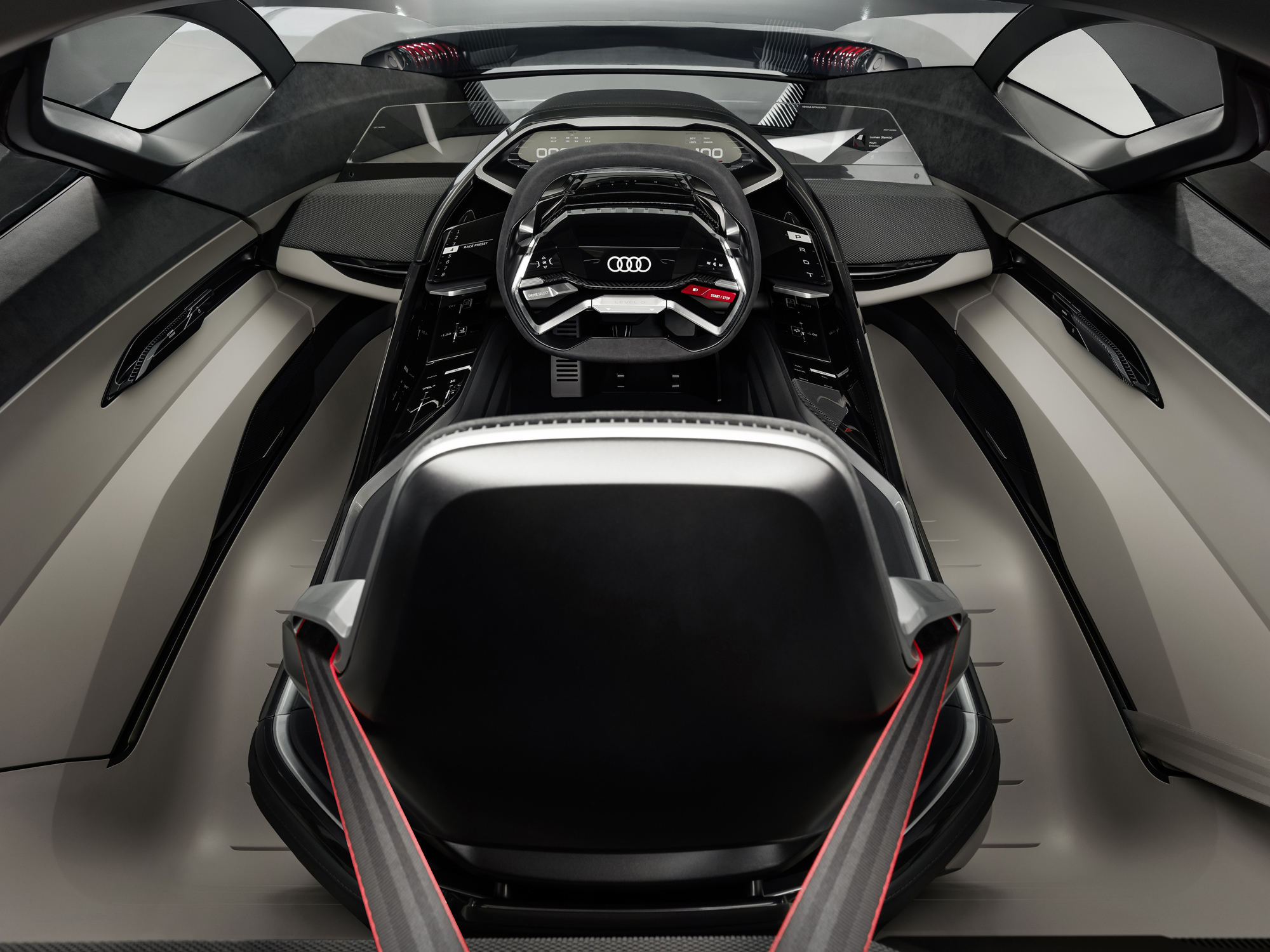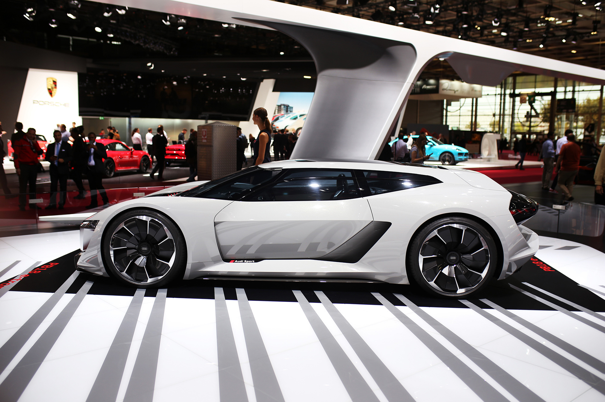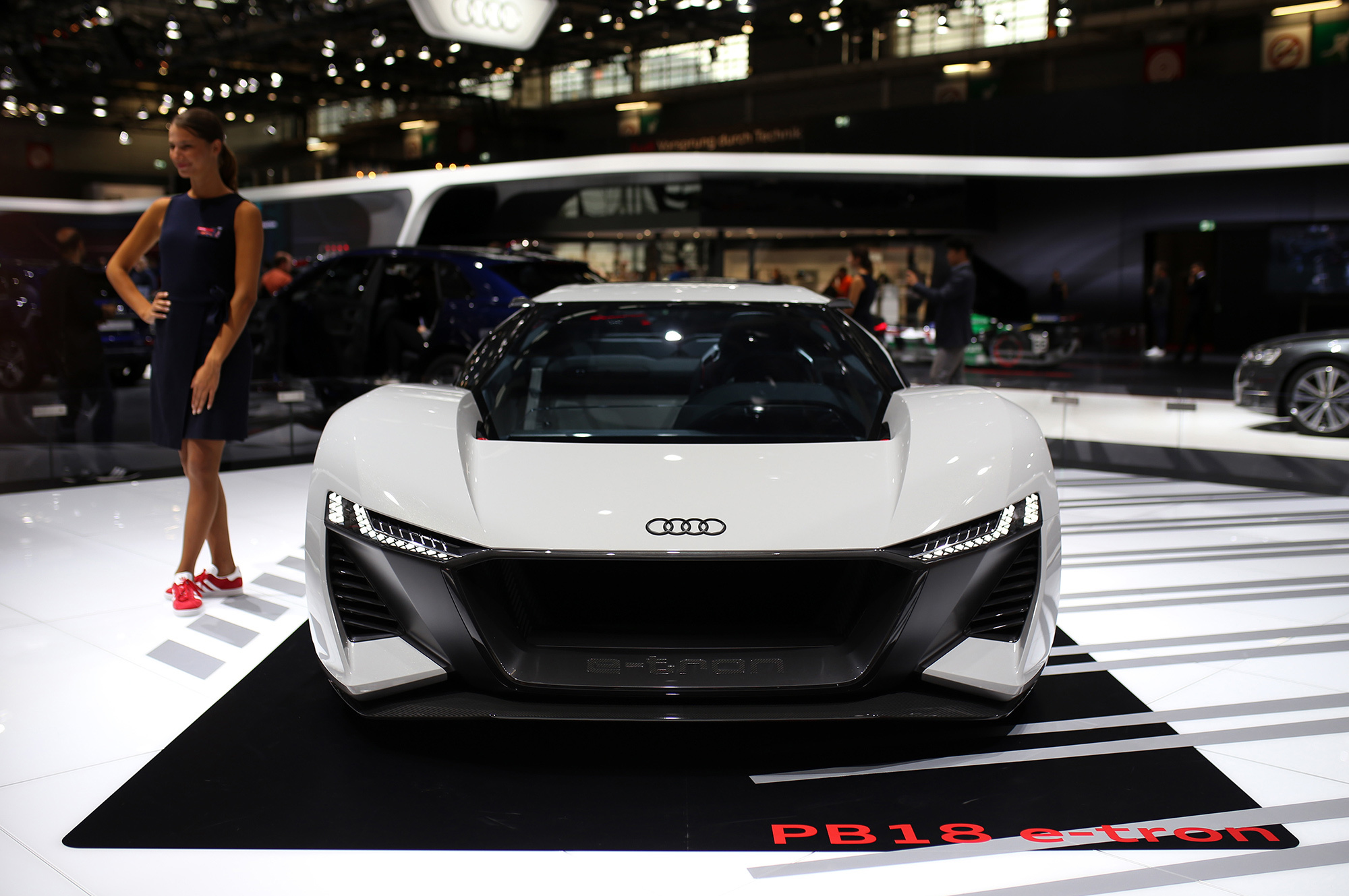 То ли спорткупе, то ли хэтчбек, то ли трёхдверный универсал, в общем PB18 e-tron, впитал опыт, полученный при разработке мелкосерийного спорткара R8 e-tron и прототипа Audi F12, череды электрических концептов вроде хэтчбека Aicon или спортивного e-tron Vision Gran Turismo, а в особенности — лемановского гибридного спортпрототипа Audi R18. Последний отмечен особо: именно от него в названии нового концепта цифра 18 (это вовсе не год), ну а PB — это Pebble Beach, место премьеры.