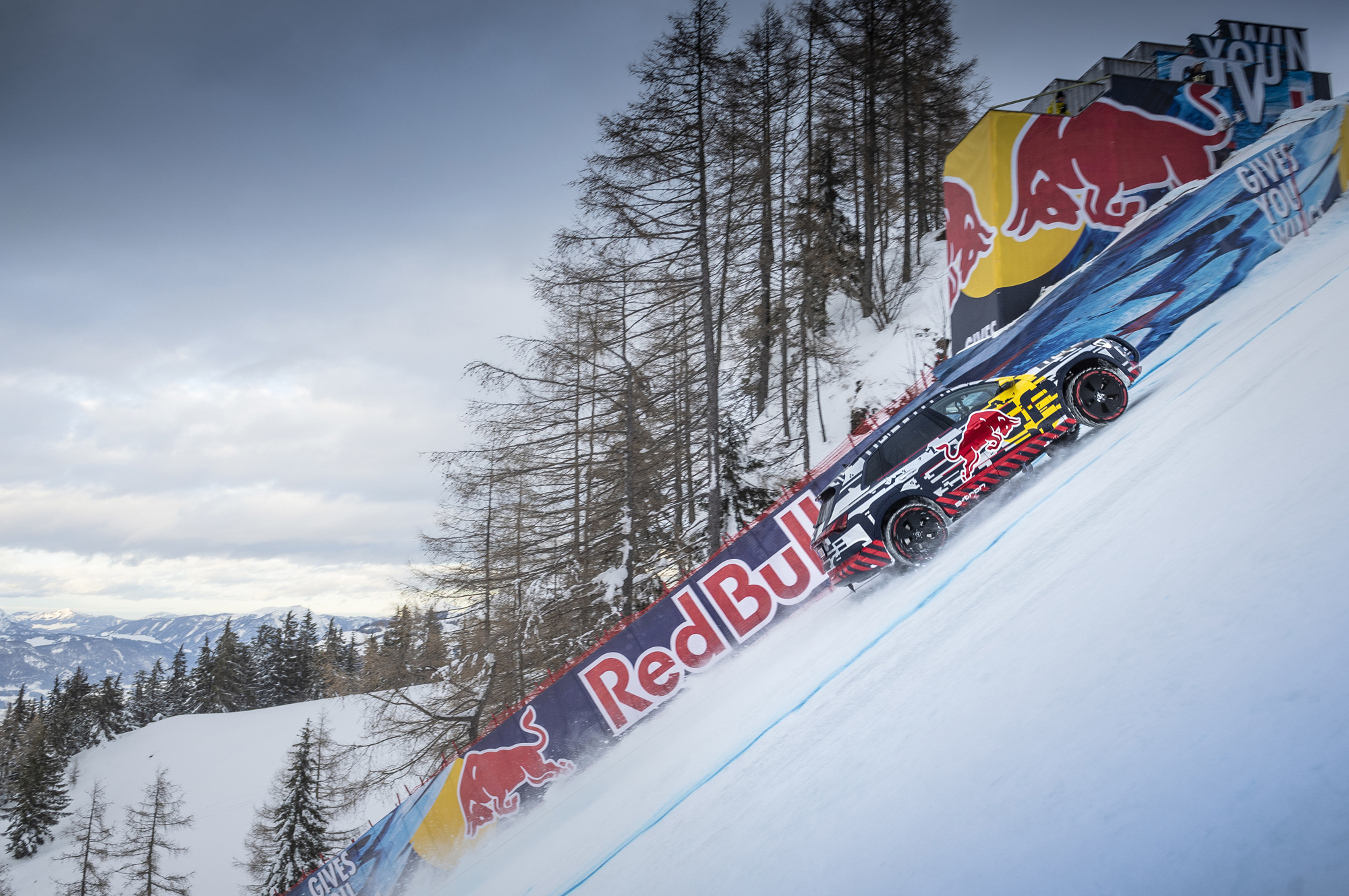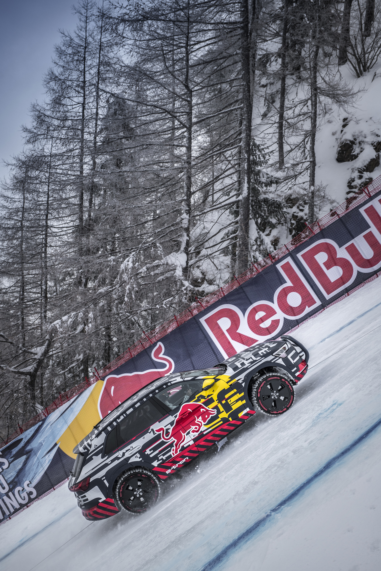 Австрийский курорт Кицбюэль, сложный горнолыжный спуск Streif, секция Mausefalle («мышеловка»). Здесь уклон достигает 85% (40,36 градуса). И именно здесь чемпион мира по ралли-кроссу и двукратный чемпион DTM Маттиас Экстрём сумел подняться по снегу и льду вверх на электрическом кроссовере Audi e-tron. Правда, паркетник был не серийной моделью, а технологическим демонстратором, отличающимся силовой установкой. Если в конвейерном варианте под полом установлено два электромотора (по одному на каждой оси), то в демонстраторе их три (один спереди и два сзади). Такая схема привода использовалась на концепте e-tron quattro 2015 года, предвещавшем нынешний e-tron.