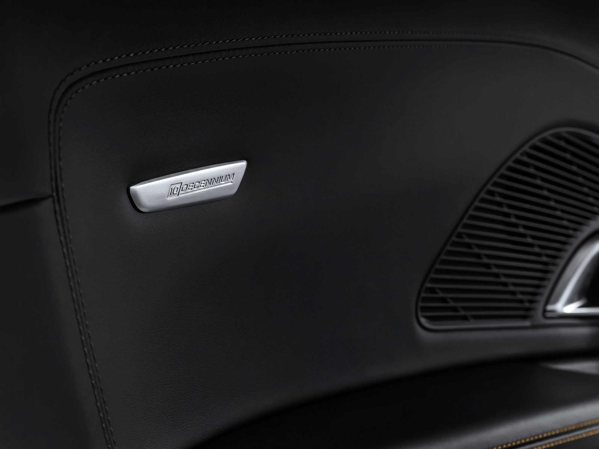 От обычных «эр-восьмых» Decennium отличается декором. Про уникальный матовый цвет Daytona Gray мы говорили, хотя при желании клиент получит окраску Daytona Gray в жемчужном варианте либо «металлики» Suzuka Gray, Floret Silver, Mythos Black, Ascari Blue и Kemora Gray. В чёрном интерьере появились вставки из глянцевого углепластика, ромбовидная простёжка на креслах, а ещё прострочка медного цвета на сиденьях, центральном подлокотнике, руле (обшитом алькантарой), чехле селектора трансмиссии и дверях.