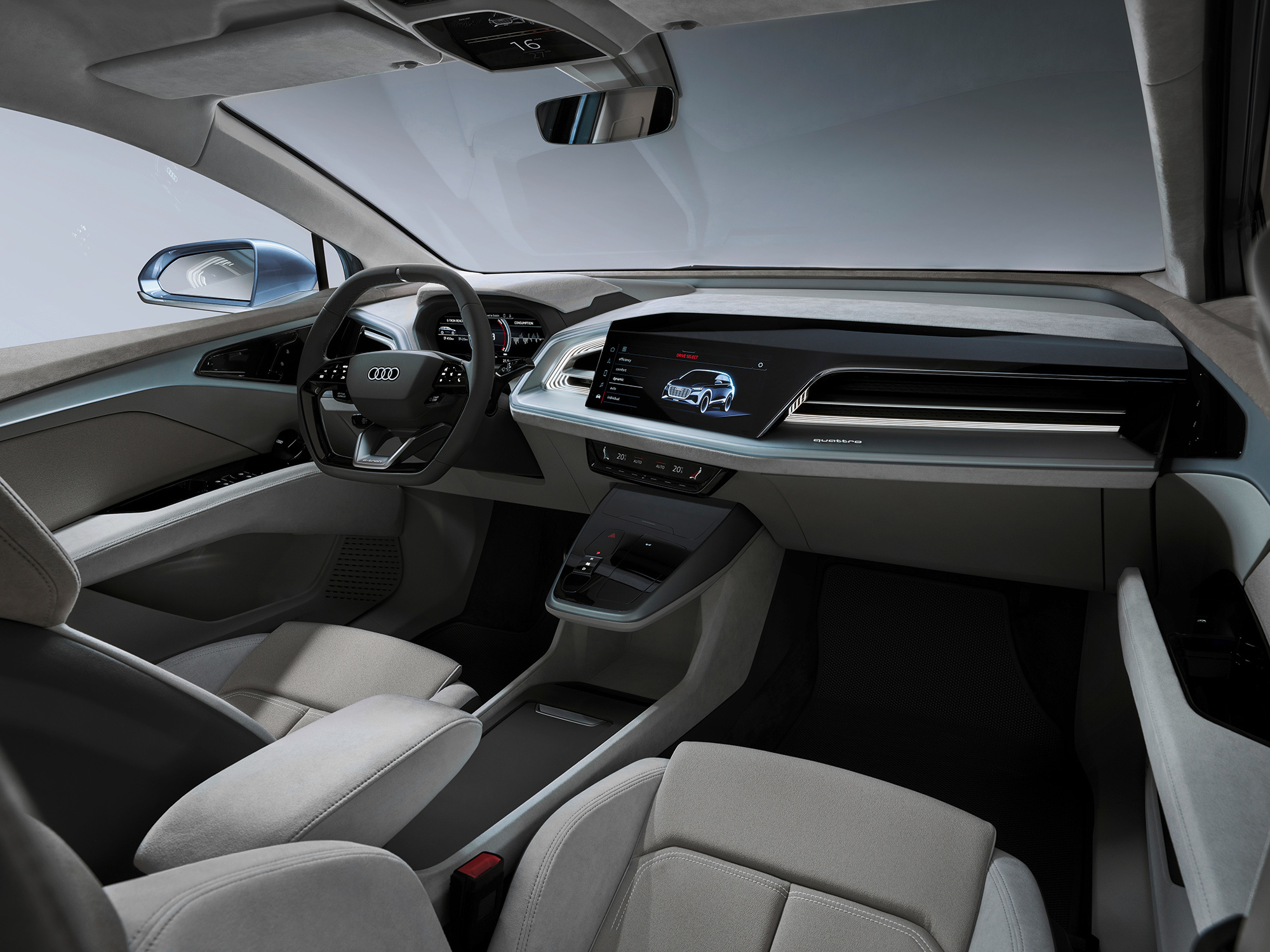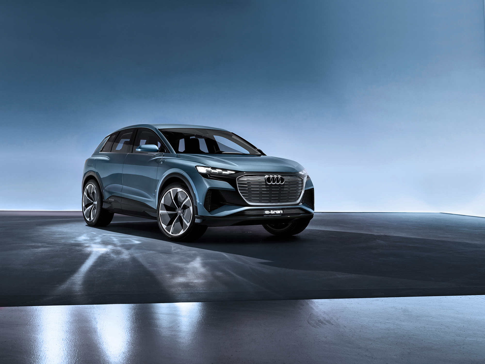 О концепте Audi Q4 e-tron прямо сказано — перед нами прототип серийного электромобиля, который будет представлен к концу 2020 года. Компакт оснащён двумя моторами мощностью 225 кВт (306 л.с.), батареей ёмкостью 82 кВт•ч и полным приводом quattro. Спурт до 100 км/ч длится 6,3 с, максимальная скорость ограничена ошейником — 180 км/ч. Запас хода превышает 450 км по стандарту WLTP.