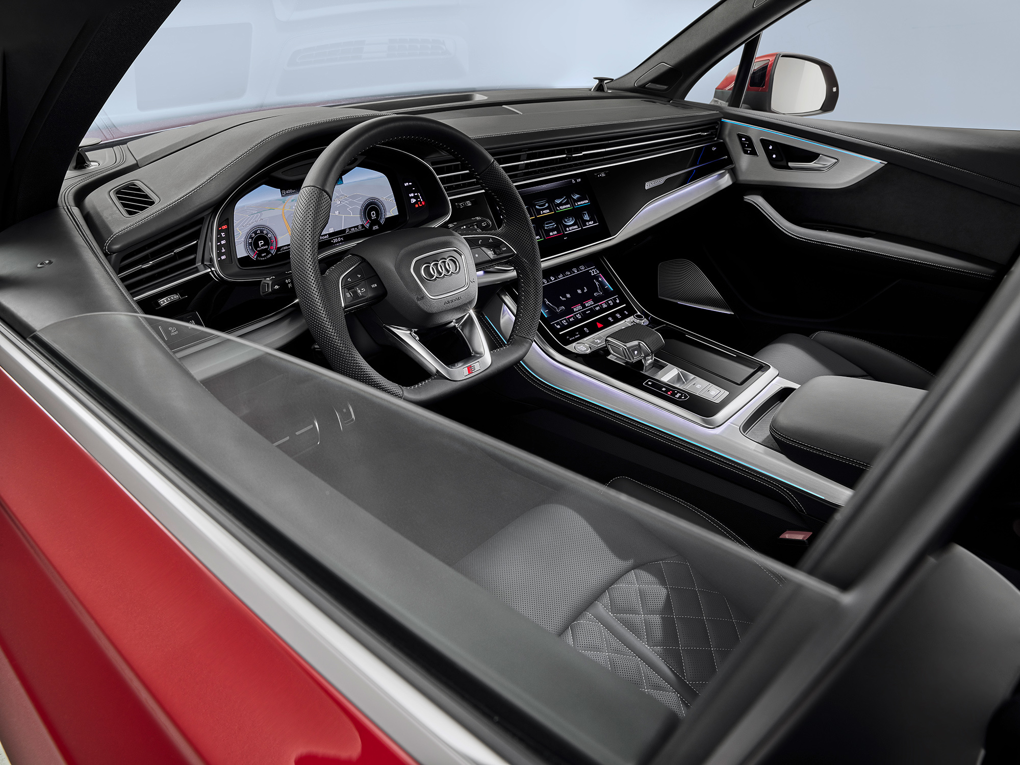 Салон тоже преобразился по образу и подобию Q8: теперь это царство сенсорных дисплеев. В базовой версии их диагональ не превышает 8,8 дюйма, но при заказе топового мультимедийного комплекса Navigation Plus она увеличивается до 10,1 дюйма. Место аналоговых приборов в таком случае занимает ставший привычным «виртуальный кокпит». В качестве опции доступен проекционный дисплей.