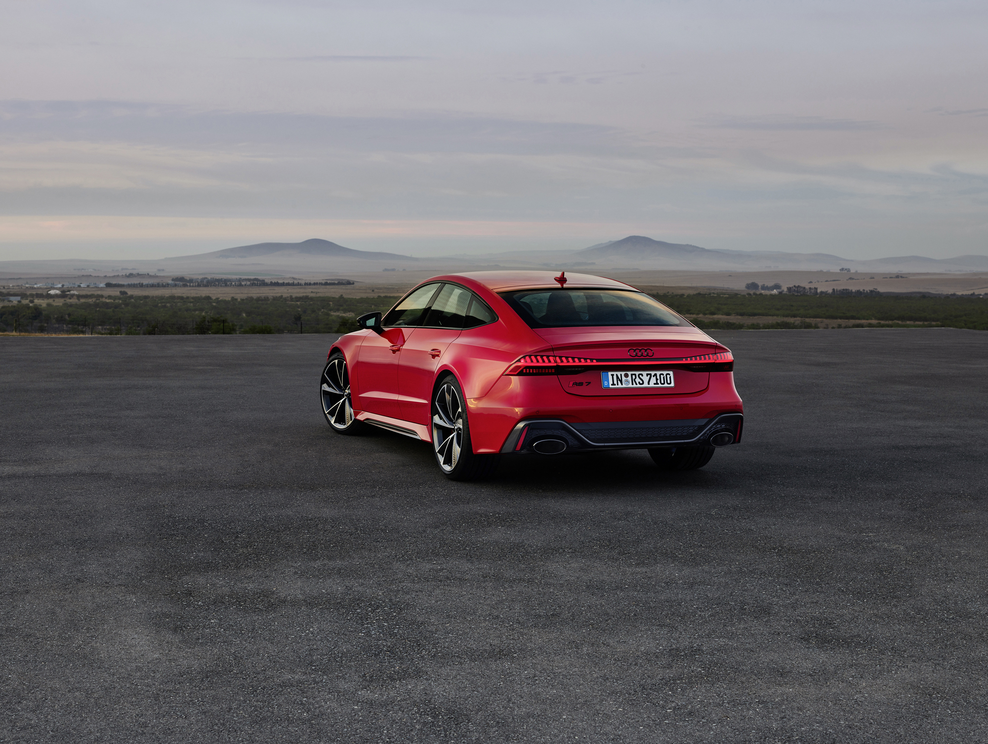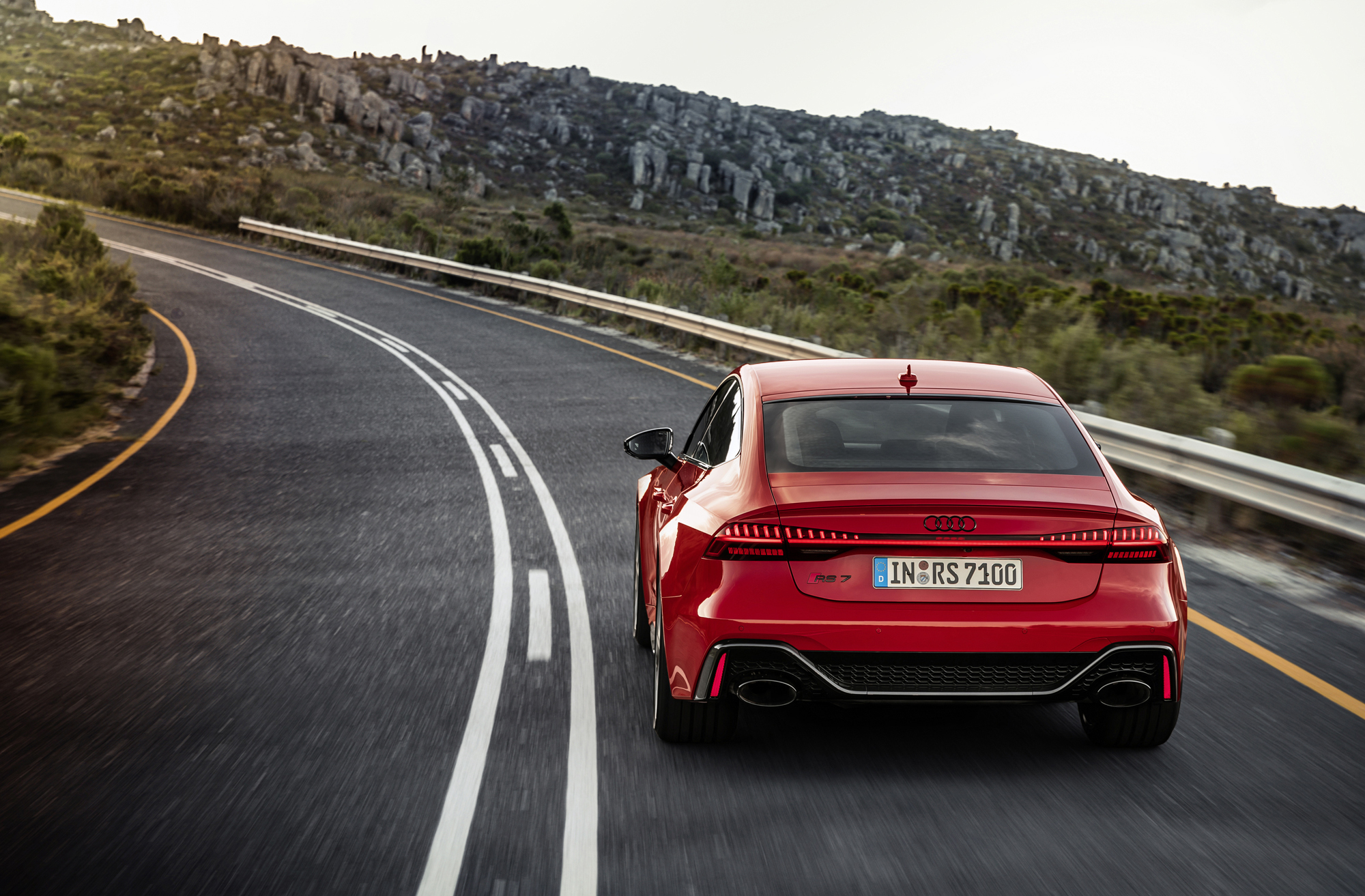 С нуля до сотни модель ускоряется за 3,6 с (как и собрат RS6), что на 0,3 с быстрее, чем RS7 прошлой генерации, и на 0,1 с лучше, чем у прошлого RS 7 performance, обладавших поголовьем в 560 и 605 «лошадок». Максималка в 250 км/ч, ограниченная электроникой, может быть увеличена до 280 и 305 км/ч с пакетами Dynamic и Dynamic plus. С ними же можно докупить дифференциал quattro sport, перераспределяющий тягу между задними колёсами в поворотах.