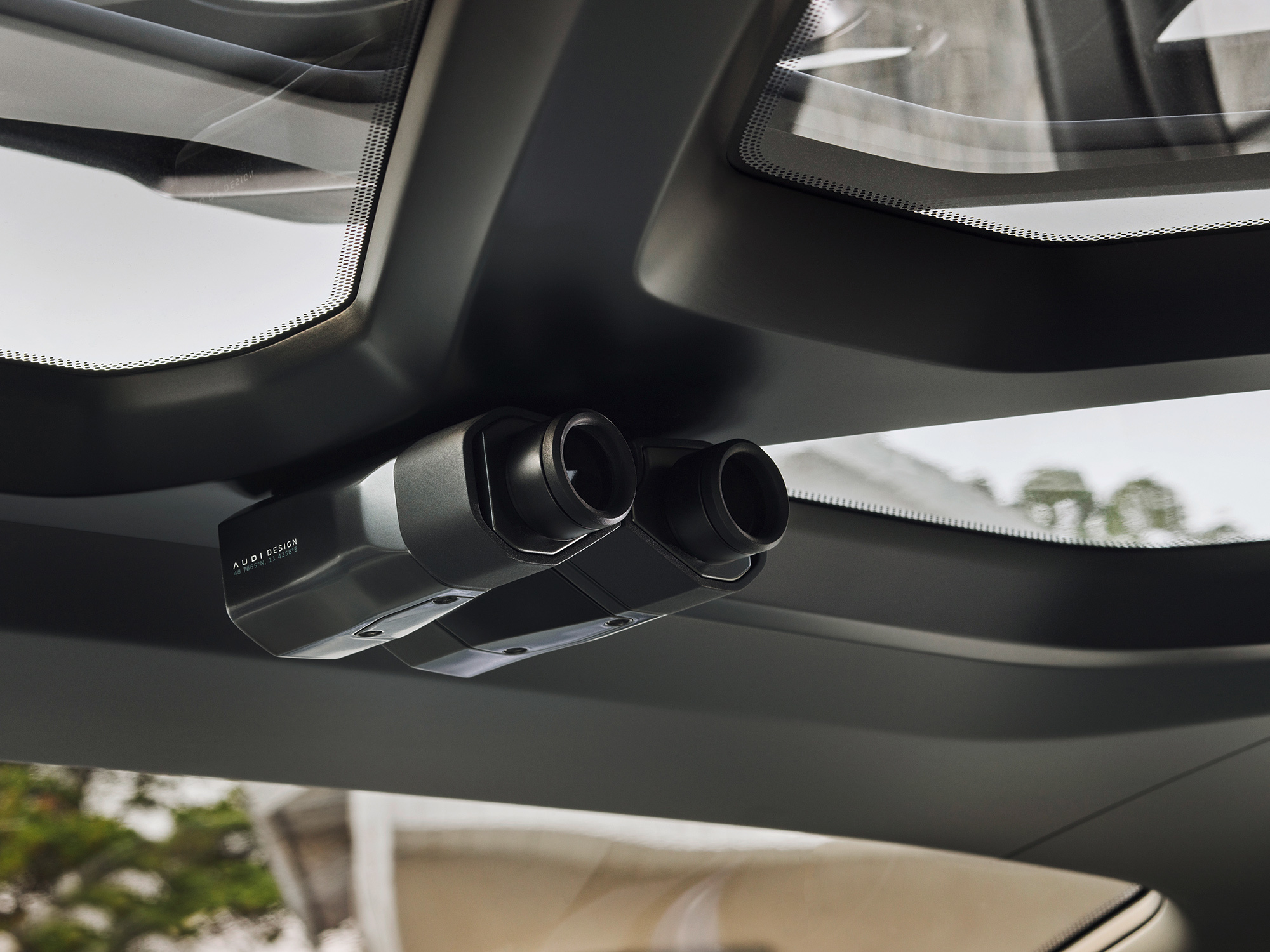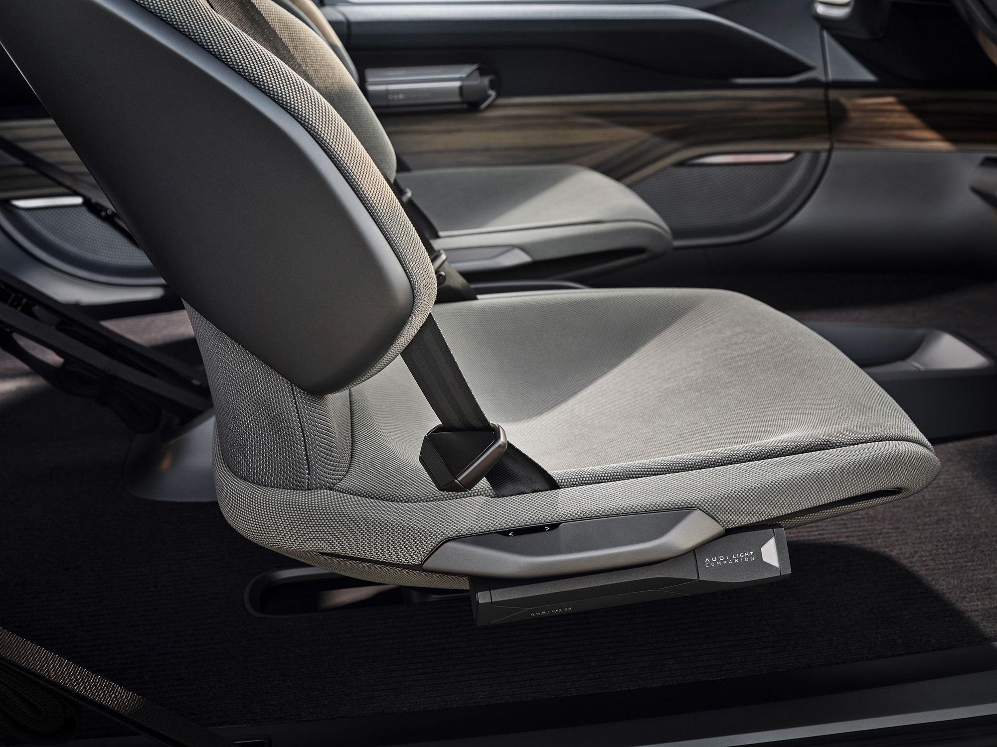 Вдобавок имеется Audi Light Companion в форме большого фонарика. Его можно примагнитить к передней части сиденья, включив в окружающую подсветку интерьера, или взять с собой на улицу, поставить на три раскладные ножки и сесть вокруг, как у костра. Несколько камер «компаньона» снимут посиделки на видео и чуть ли не сами выложат ролик в социальные сети. Вместе с тем Light Companion, полагаясь на данные штатного навигатора, проецирует на землю символы, указывающие направление движения в пешем походе.
