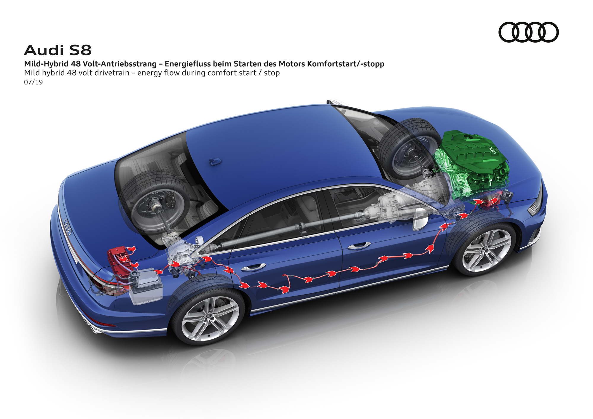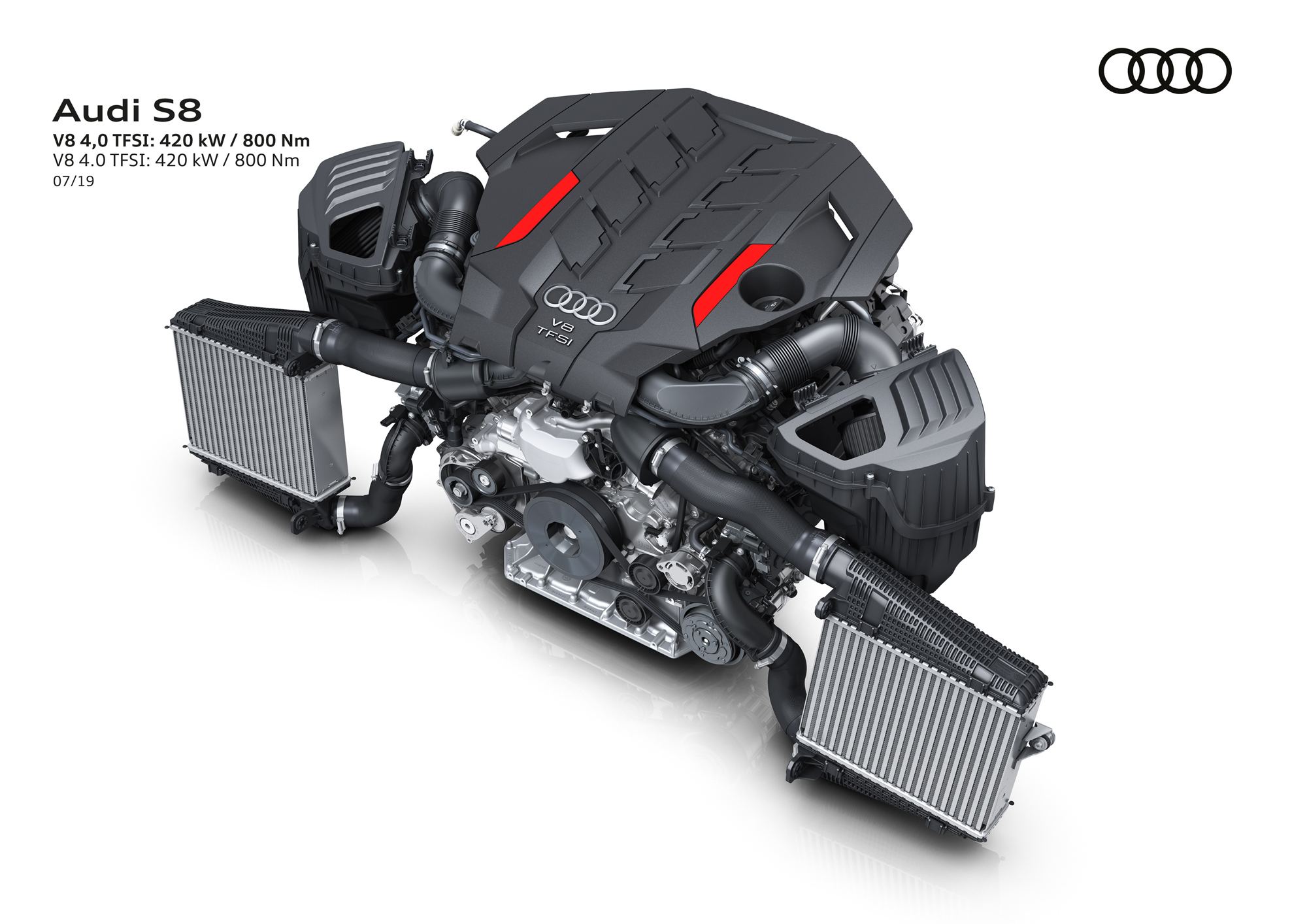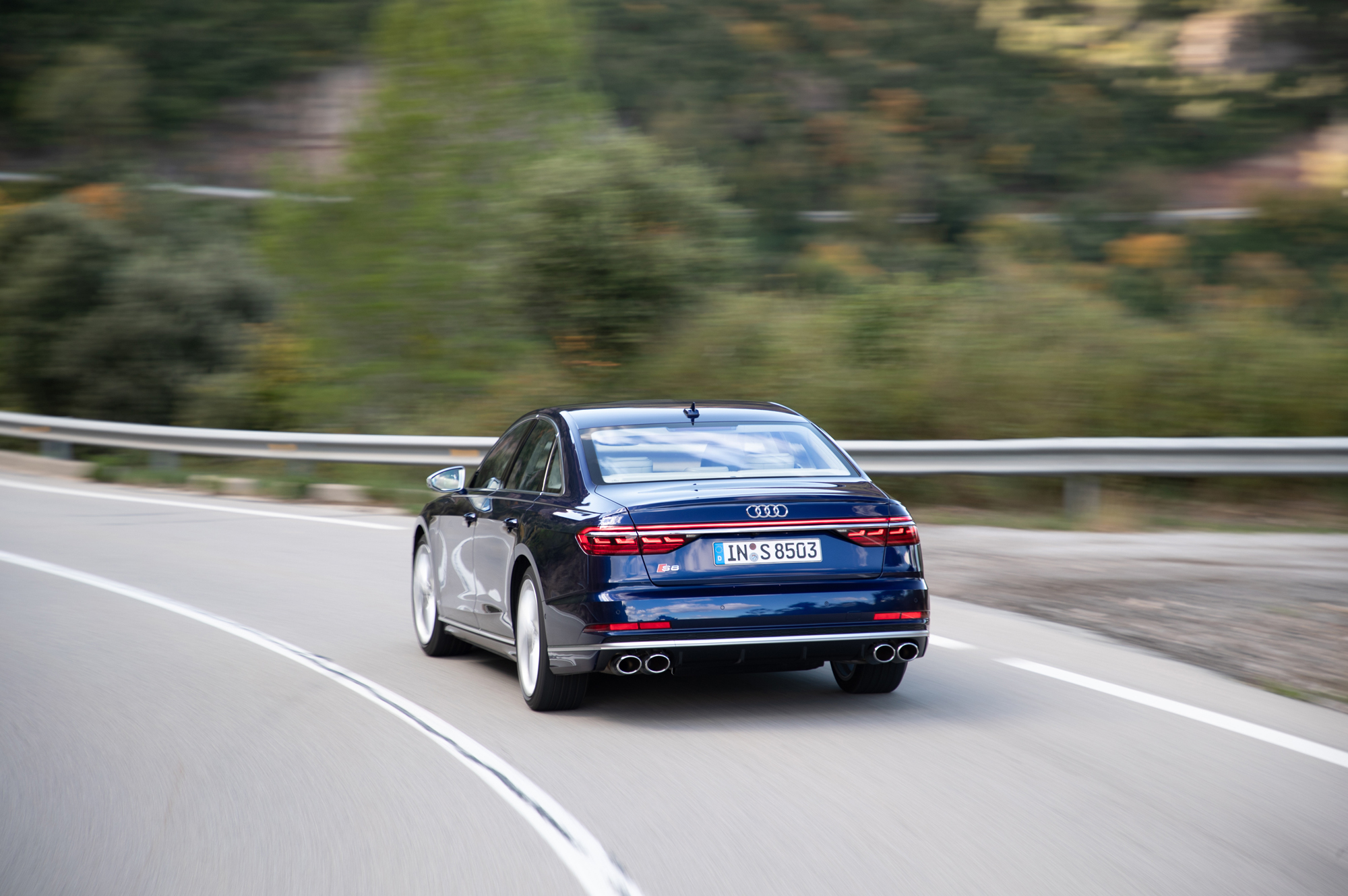 Как и подобает флагманской машине, Audi S8 оснащён целым набором передовых узлов. В частности, спортивный дифференциал перераспределяет тягу в быстрых поворотах, отдавая большую часть внешнему колесу, за счёт чего «вкручивает» седан в поворот, подавляя любой намёк на недостаточную поворачиваемость, вдобавок тут есть полноуправляемое шасси, повышающее стабильность на высоких скоростях и маневренность на низких.
