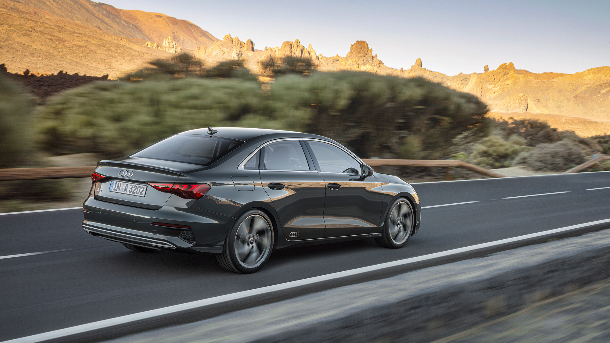 Спустя полтора месяца после хэтчбека Audi A3 дебютировал одноимённый седан нового поколения. Его длина увеличилась на 37 мм (до 4495 мм), а ширина и высота — на 20 и девять миллиметров (1816 и 1425 мм соответственно). Но колёсная база осталась на прежнем уровне — 2636 мм (столько же у хэтча последней генерации). Для сравнения, габариты седана BMW второй серии — 4526×1800×1420 мм, расстояние между осями составляет 2670 мм. Те же показатели у четырёхдверного Мерседеса А-класса — 4549×1796×1446 мм при базе 2729 мм. Модель из Ингольштадта уступает основным конкурентам по длине и колёсной базе, но объём багажника у A3 больше — 425 л против 420 л у Мерседеса и BMW.