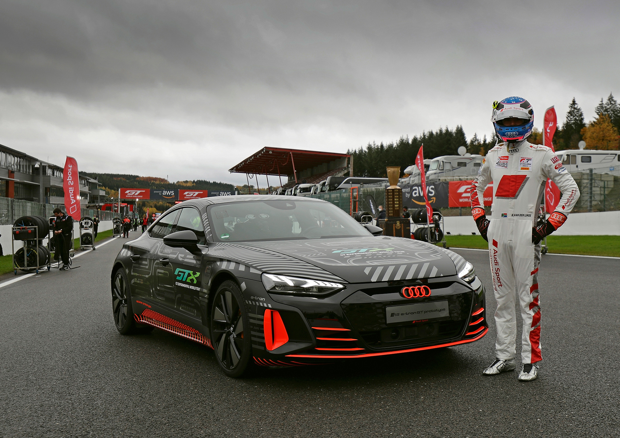 В то время как «обычный» Audi e-tron GT готовится к старту производства в немецком Неккарзульме, «четыре кольца» начали рекламировать его «заряженную» RS-версию. Избранные журналисты испытали закамуфлированный прототип в Греции. По их словам, отдача двухмоторной установки (Audi пока не разглашает характеристики) составляет 598–599 л.с., 830–850 Н•м. В режиме overboost мощность кратковременно возрастает до 647–655 л.с. Разгон до сотни длится 3,1–3,5 с, хотя масса седана — около 2300 кг. Заряда батареи ёмкостью 93,4 кВт•ч (реально используется 83,7), по идее, хватает на 402 км (WLTP).