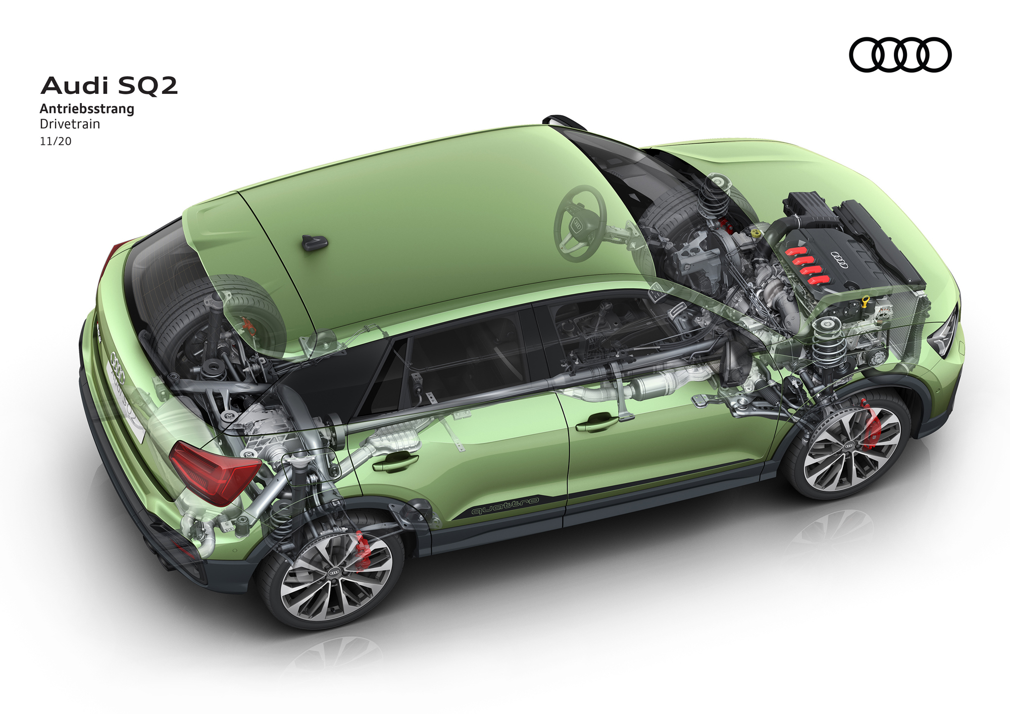 У машины появилось несколько новых вариаций окраски и цветовых акцентов. Изначально передние боковые воздухозаборники будут окрашены в Selenite Silver, сбоку, на спойлере и задней стойке предусмотрены серебристые вставки, а корпуса зеркал оформлены под алюминий. За доплату цветовые акценты (от корпусов зеркал до воздухозаборников) меняются на Manhattan Gray или глянцево-чёрный. Аналогично в интерьере базовая (для SQ2) тёмная отделка из ткани и кожи может быть заменена на наппу или на комбинацию кожи и микрофибры Dinamica. В Германии модель оценена в 45 700 евро (4,14 млн рублей). Поставки заказчикам стартуют в начале 2021 года.