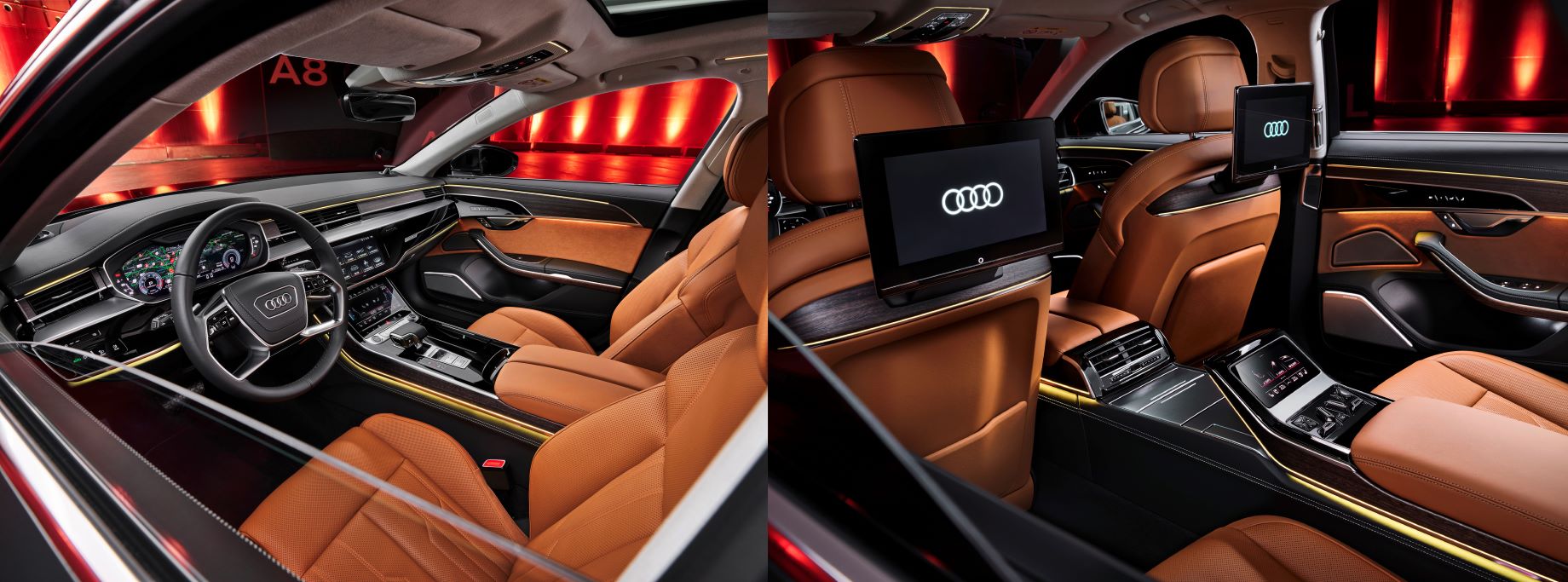 Флагманский седан Audi A8 четвёртого поколения D5 (2017) обновился вместе с двумя вариациями — удлинённой A8 L и «спортивной» S8. Главным приобретением стали светодиодные фары с цифровой матрицей DMD (digital micromirror device) из 1,3 млн микрозеркал и фонари на органических светодиодах (OLED). Кроме того, заменены решётки и бамперы, впервые внедрён экстерьерный пакет S line, добавлены шесть цветов кузова (теперь их 11) и шесть вариантов дизайна колёсных дисков (от 18 до 21 дюйма).