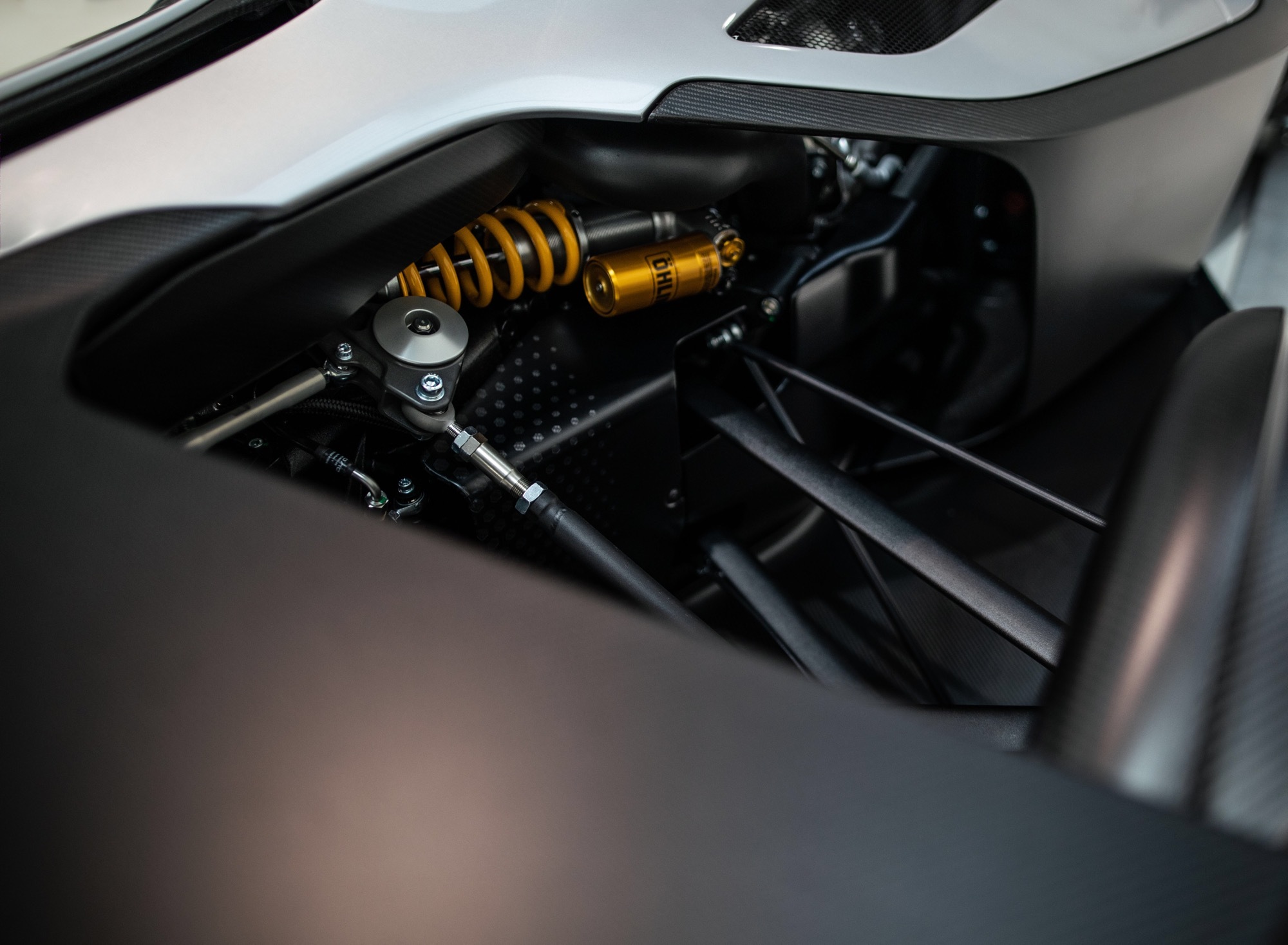 Передняя и средняя части кузова, фронтальная оптика, боковые воздухозаборники полностью копируют те же элементы от Mono R. Материал, из которого сделаны внешние панели, такой же ― углеволокно, обогащённое графеном. Двухрычажные подвески, их геометрия, двухрежимные амортизаторы Ohlins, а также углеродокерамические тормоза с моноблочными четырёхпоршневыми суппортами AP Racing тоже взяты от «эрки». А вот боковые зеркала, задняя часть кузова с более узким хвостом, светодиодные фонари и лёгкие колёса (каждое весит 2,2 кг) — собственные.