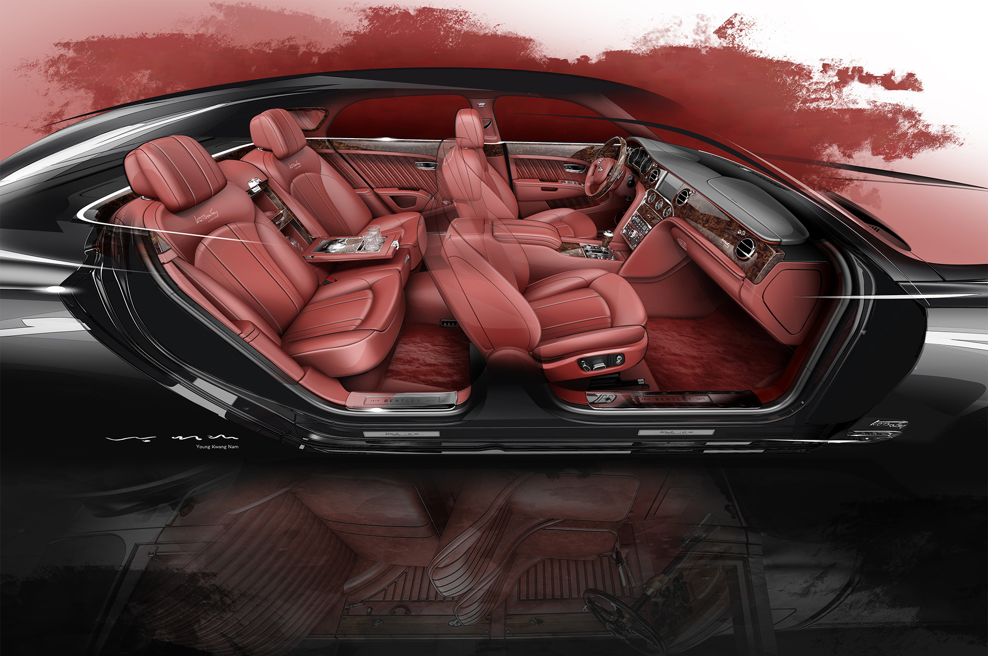 Тёмный ореховый шпон на передней панели, руле и дверях, коврики из телячьей кожи под ногами, сверкающий алюминий и стеклянные тумблеры перед глазами, портрет модели Bentley 8 Litre как деревянная инкрустация в стиле ар-деко... Коллекционеры смогут оценить уникальный Mulsanne в конце августа на шоу Monterey Car Week в Калифорнии. Продажи партии из ста эксклюзивных седанов по неназванным ценам начнутся одновременно с юбилеем. Не удивимся, если все машины уже заказаны.