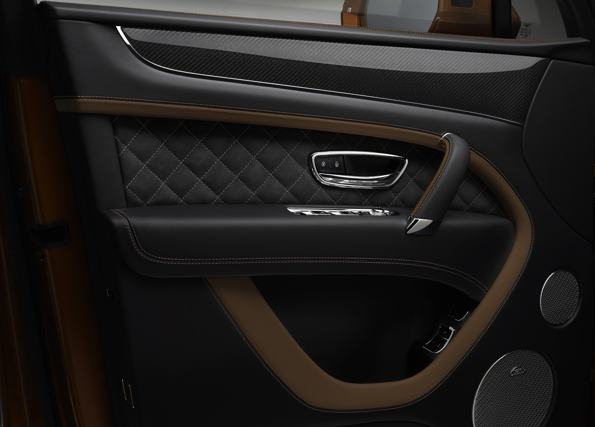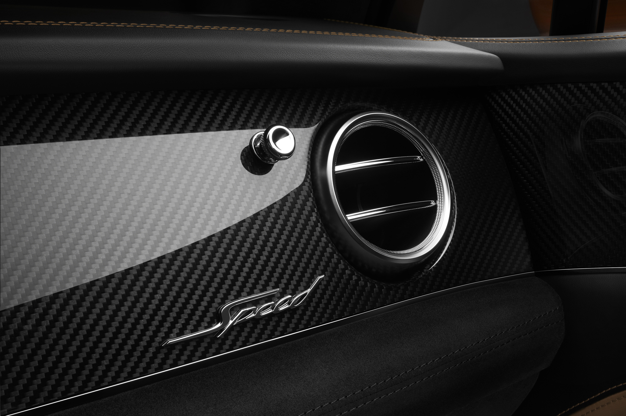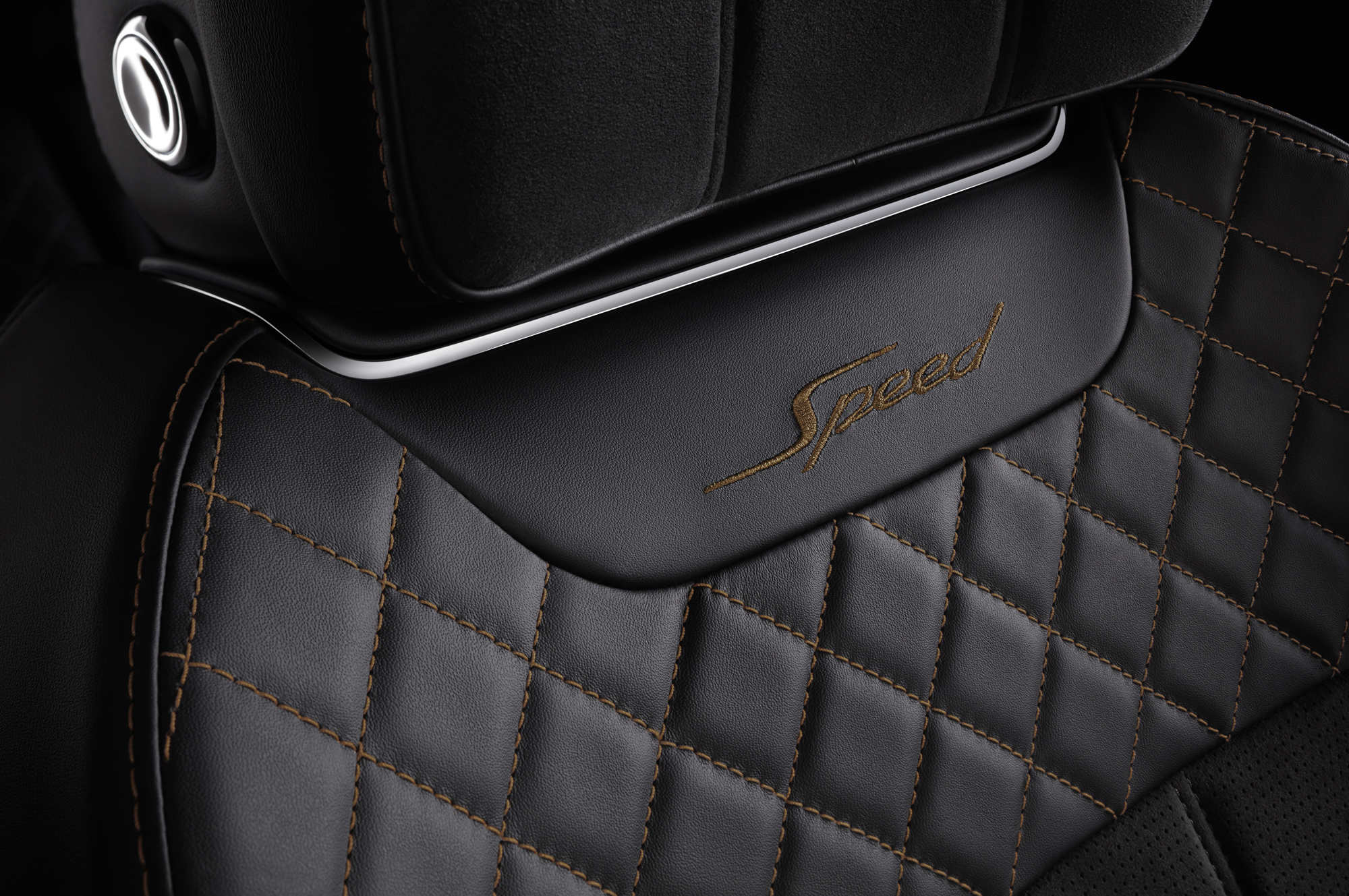 Роскошный кроссовер Bentley Bentayga Speed в виде опций может быть оснащён развлекательной системой на втором ряду (кстати, пятиместный салон тут может быть заменён на четырёхместный), передними сиденьями с регулировкой в 22 направлениях и массажем, углепластиковым декором на передней панели.