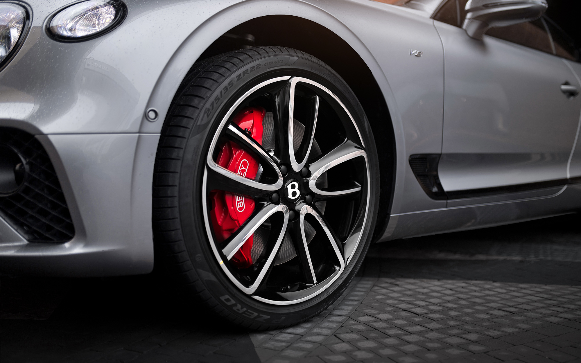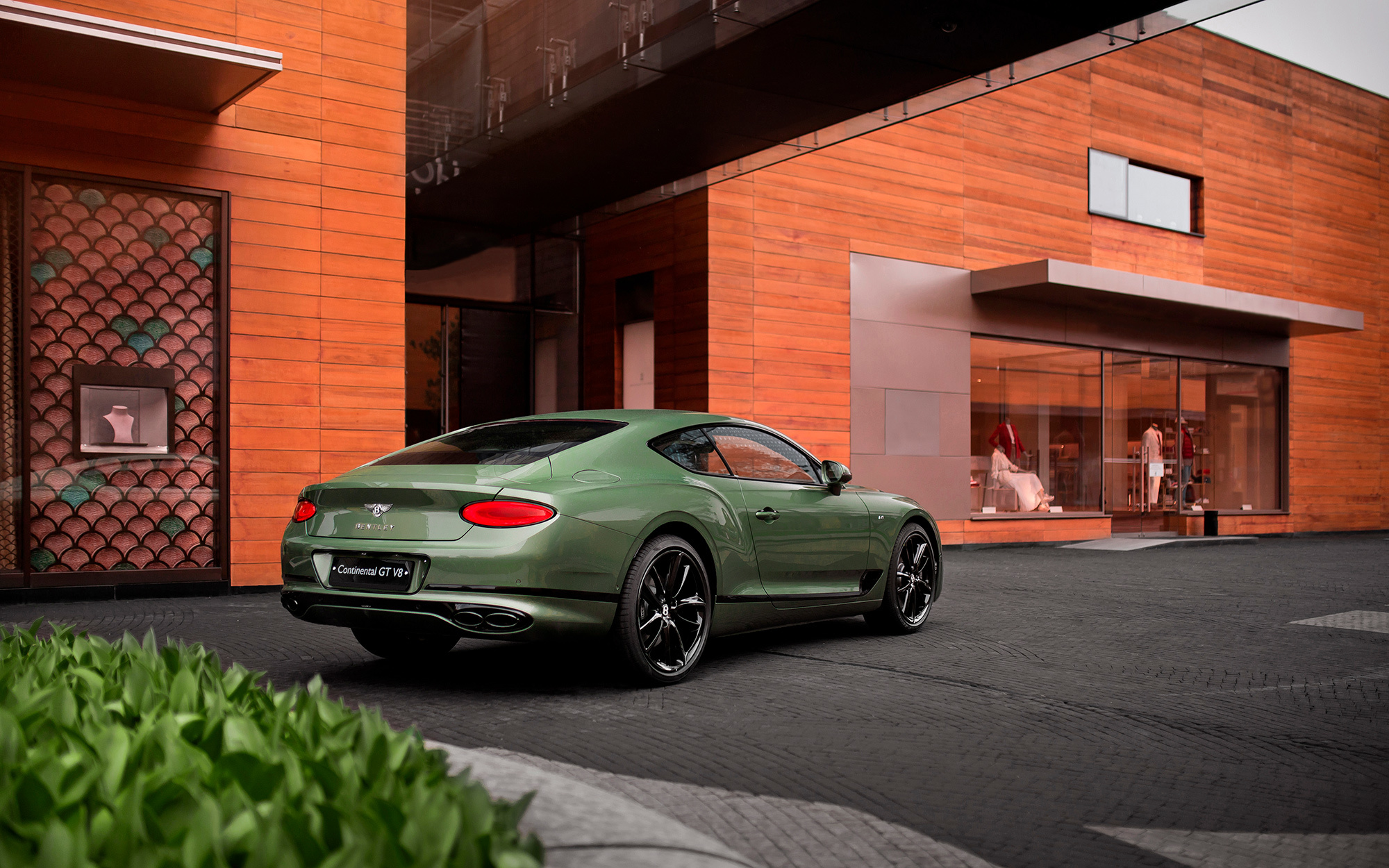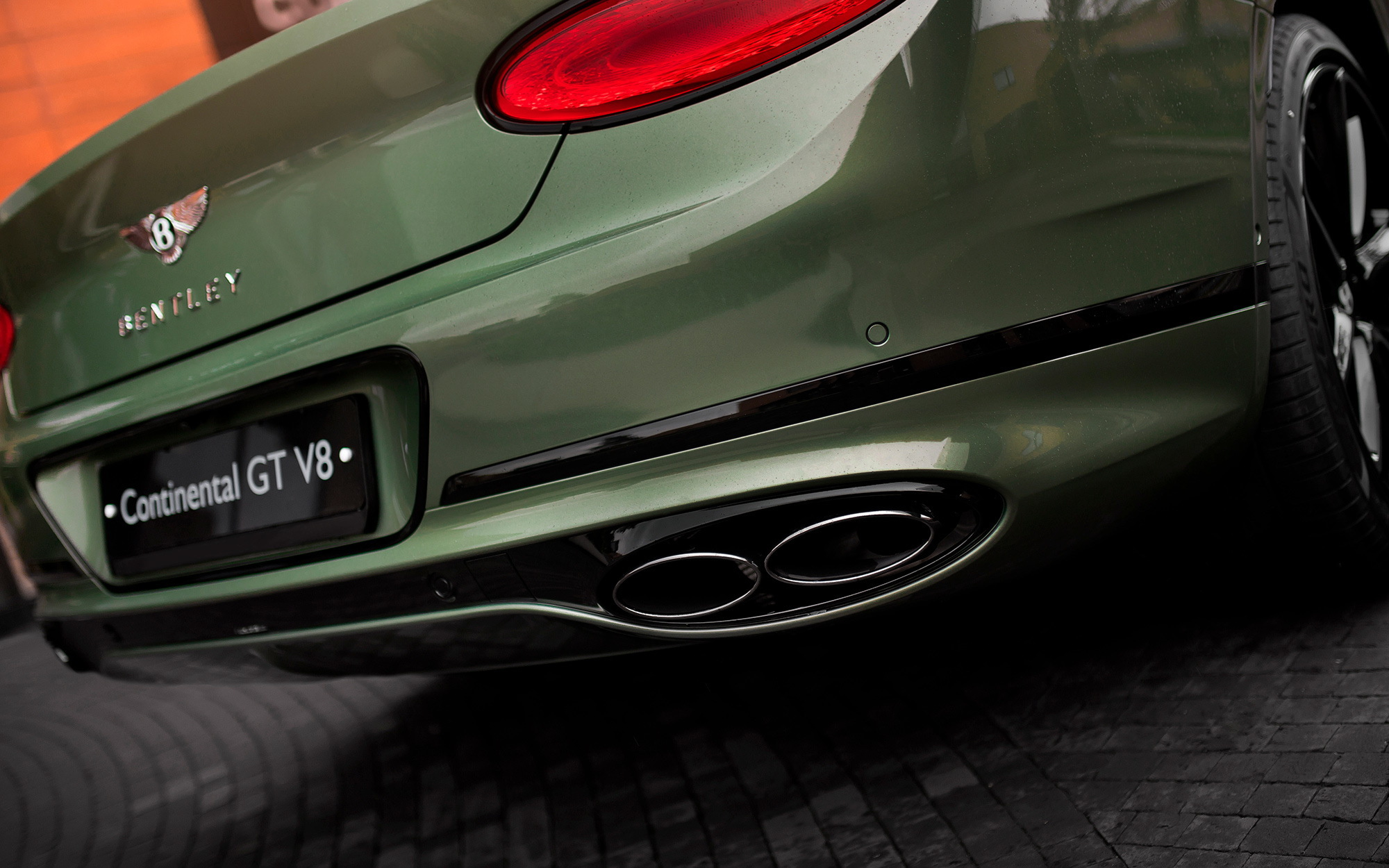 Continental GT V8 отличается от аналога с W12 четырьмя патрубками выпускной системы вместо двух овальных, оригинальными 20-дюймовыми колёсами и шильдиками V8 на передних крыльях. Двухнаддувная «восьмёрка» развивает 550 л.с. и 770 Н•м против флагманских 635 и 900 соответственно. Ускорение до сотни у младшей версии занимает четыре секунды ровно, а максимальная скорость достигает 318 км/ч. Те же показатели у машины с W12 — 3,7 с и 333 км/ч. Как и старшая модификация, Continental GT V8 по умолчанию оснащается восьмиступенчатым преселективом и гидравлической многодисковой муфтой с электронным управлением, передающей момент на переднюю ось.