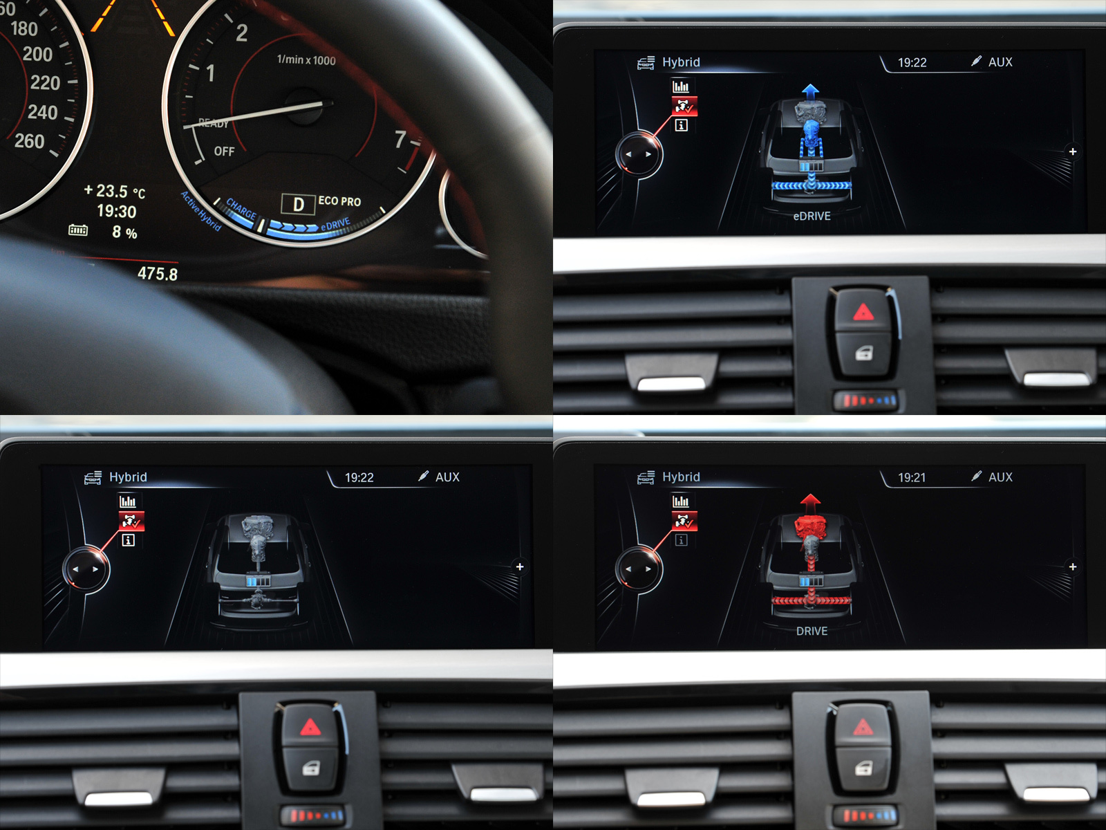 Седан BMW 3 ActiveHybrid способен передвигаться как с помощью обоих двигателей, так и в полностью электрическом режиме. Электромотор снабжён сцеплением, отделяющим ДВС от силовой установки, — в режиме Eco Pro на скоростях до 160 км/ч во время езды накатом четырёхдверка может ехать, не используя возможностей бензиновой «шестёрки». А на одной электротяге «трёшке» ActiveHybrid по силам проехать до 4 км при средней скорости 35 км/ч (максимум — 75 км/ч).