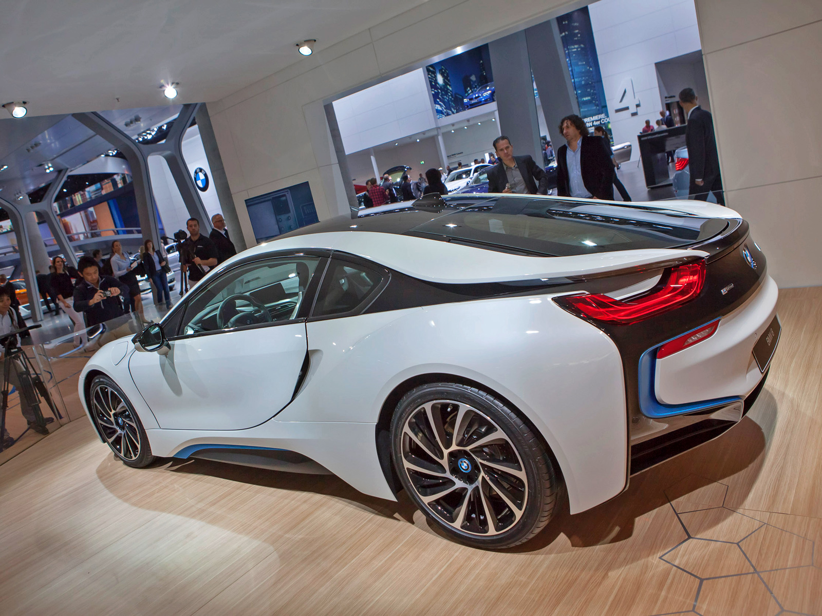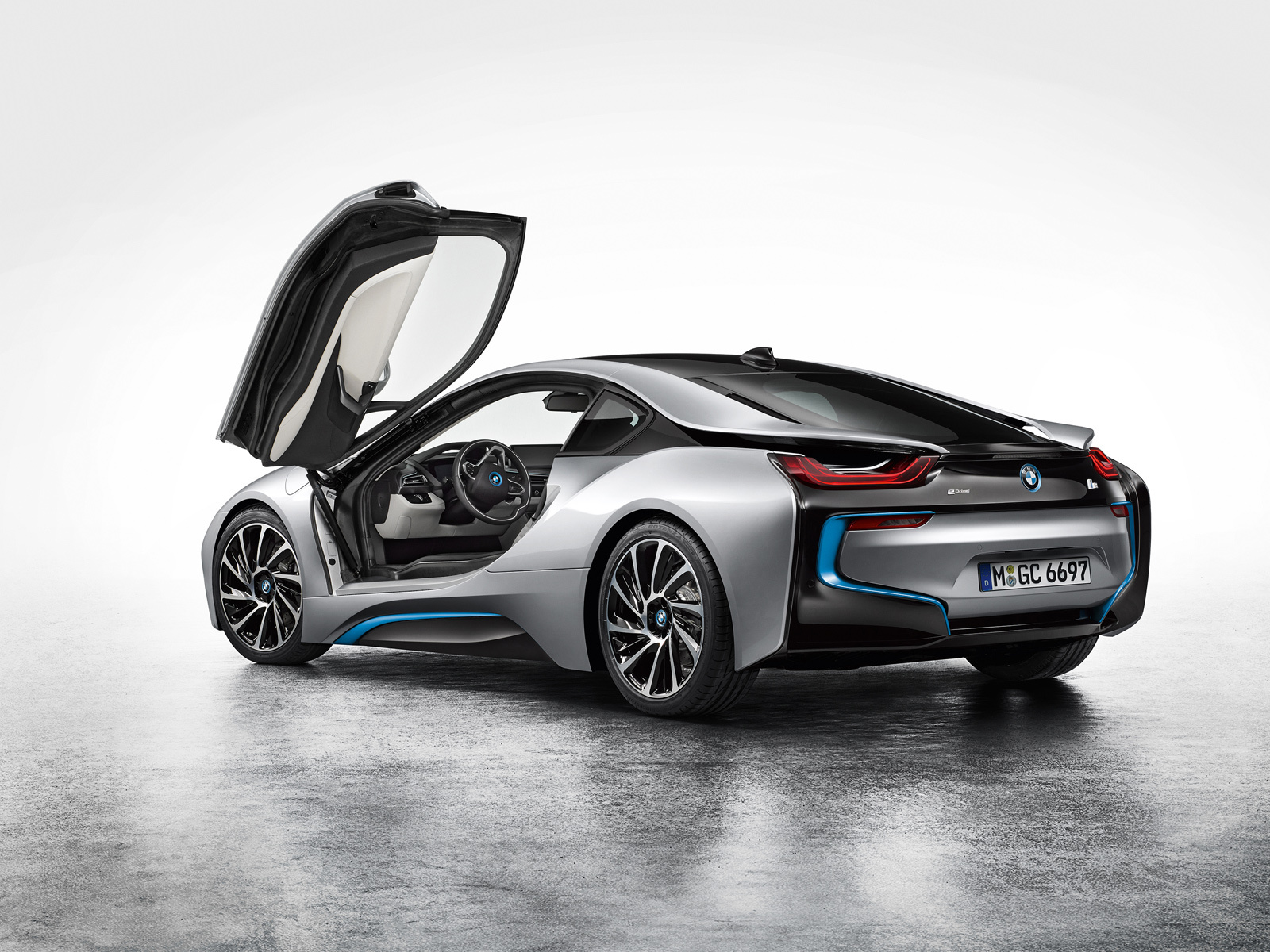 А ведь BMW i8 — гибрид. Заднюю ось вращает бензиновый турбомотор 1.5 с тремя цилиндрами, развивающий 231 л.с. и 320 Н•м и работающий в паре с шестиступенчатым «автоматом». Передние колёса отданы на откуп синхронному электромотору со 131 силой и 250 ньютон-метрами, которые проходят через двухступенчатую коробку передач. Суммарная отдача силового агрегата — 362 «лошади» и 570 Н•м. Этого хватает для того, чтобы выстрелить с нуля до 97 км/ч за 4,5 с и разогнаться в итоге до 250 км/ч. Полноприводная система с электронным управлением заведует распределением тягой не только между осями, но и между колёсами одной оси. Спорткар вдобавок оснащён мехатронным шасси, в котором с помощью электроники можно менять режимы работы электромеханического рулевого управления, активных амортизаторов, трансмиссии и дроссельной заслонки.