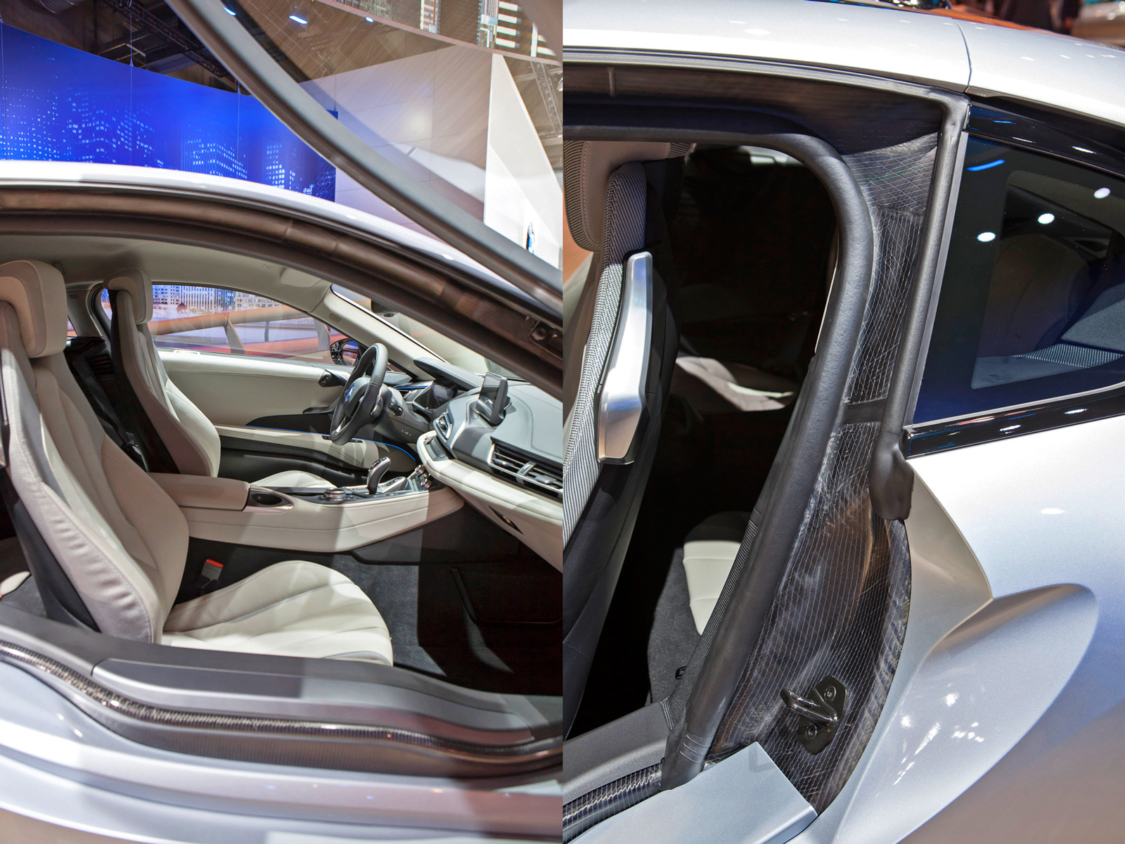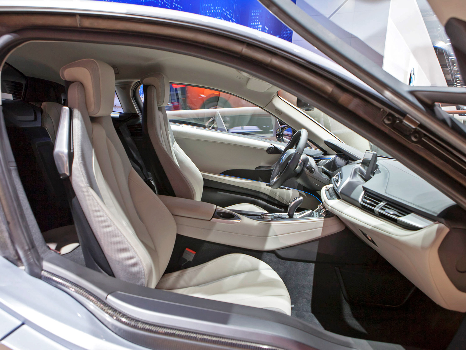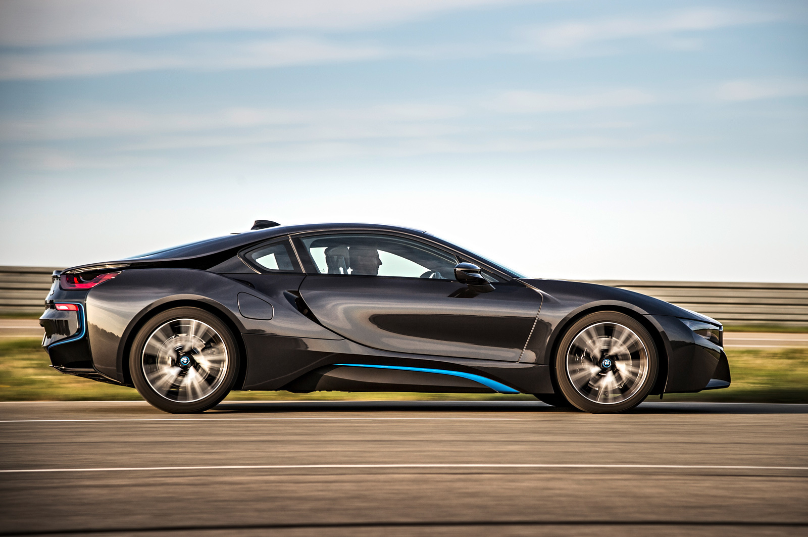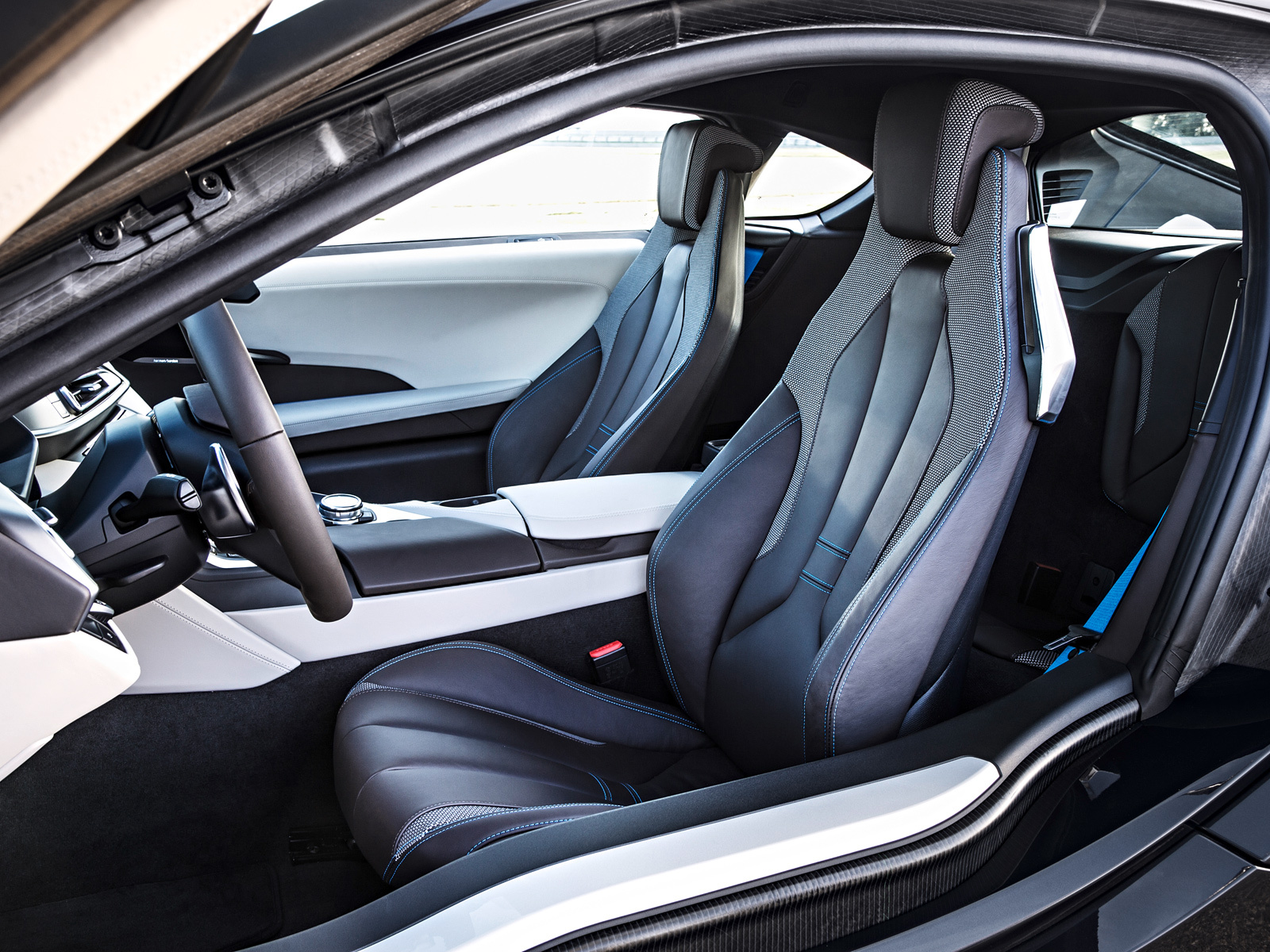 Литий-ионная батарея расположена в центре пола BMW i8, что позволило сделать развесовку по осям идеальной (50 на 50). В зависимости от напряжения зарядной установки (120 или 220 В) аккумуляторы полностью наполняются энергией за три с половиной или полтора часа. Также заряжается батарея при рекуперативном торможении или когда ДВС начинает работать как генератор. Если бензина в баке и энергии в аккумуляторах по максимуму, то автомобиль способен одолеть до 500 км пути. Этот показатель уменьшится до 35 км, если электродвигатель будет трудиться без поддержки бензинового турбомотора. В таком случае и максимальная скорость не превысит 120 км/ч. В общем, чтобы успокоиться, нам осталось только взглянуть на внешность и интерьер серийной машины.