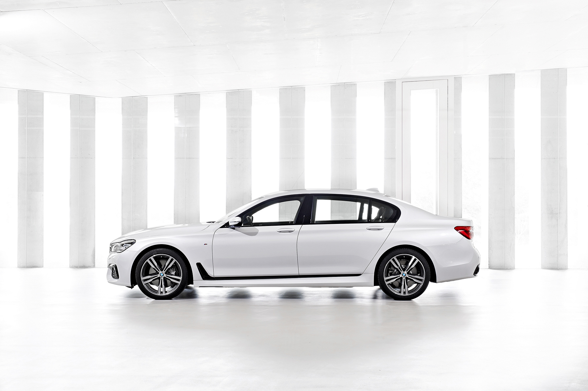 На первом этапе «семёрка» выходит в трёх версиях. Начальная — BMW 730d, доступная с задним и полным приводом xDrive, а также в модификации с увеличенной базой 730Ld (все такие машины длиннее обычных на 14 см). В любом случаем под капотом трудится турбодизельная «шестёрка» 3.0 (265 л.с., 620 Н•м). Следующий вариант — BMW 740i, который тоже имеет длиннобазное исполнение (740Li), а оснащается шестицилиндровым двигателем 3.0 (326 л.с., 450 Н•м), и xDrive ему не положен. Между тем модификация BMW 750i xDrive (растянутая зовётся 750Li) идёт только с полным приводом и турбомотором V8 4.4 (450 л.с., 650 Н•м). Конечно, последний седан быстрее других — 4,4 с до 100 км/ч. «Семьсот сороковой» требуется 5,5 с, дизельной «семьсот тридцатой» — 5,8. Все версии комплектуются восьмиступенчатым «автоматом» Steptronic, а максималка трёх вышеназванных ограничена электроникой на отметке 250 км/ч.