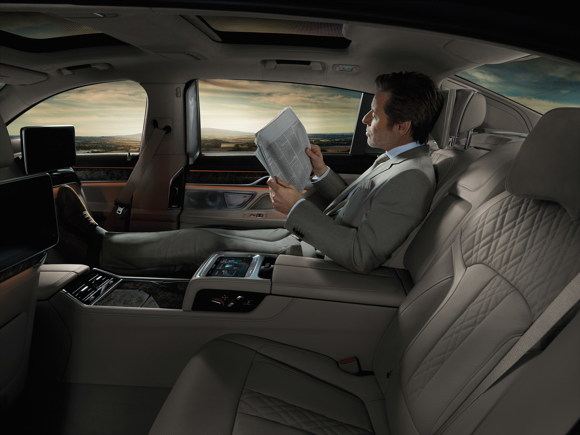 Дисплеи системы iDrive и четырёхзонного климат-контроля впервые стали сенсорными. Регулировать громкость «музыки» Bowers & Wilkins с объёмным звуком, принимать или отклонять телефонные звонки теперь можно с помощью простых жестов. Ещё одна фишка — лазерные фары, как на гибриде i8. В «базе» седан комплектуется светодиодными, но если заказать BMW LaserLight, получишь энергоэффективность почти на 30% выше, а дальний свет будет бить на 600 м.