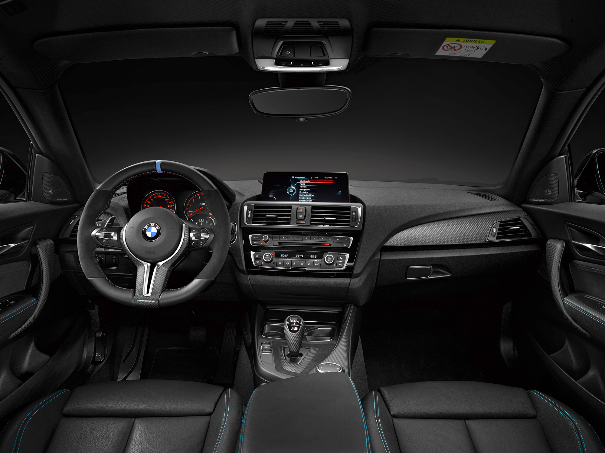 В салоне появились новое спортивное рулевое колесо, обтянутое алькантарой, модернизированные сиденья, вставки на центральной консоли и селекторе трансмиссии из углепластика, а также накладки на педали из нержавеющей стали. Напомним, публичный дебют «заряженное» купе BMW M2 справит на ноябрьском мотор-шоу в Лос-Анджелесе. Автомобиль оснащён трёхлитровым турбомотором мощностью 370 л.с. Время разгона до 100 км/ч составляет 4,5 с у машин с «механикой» и 4,3 — с «роботом» М DCT.