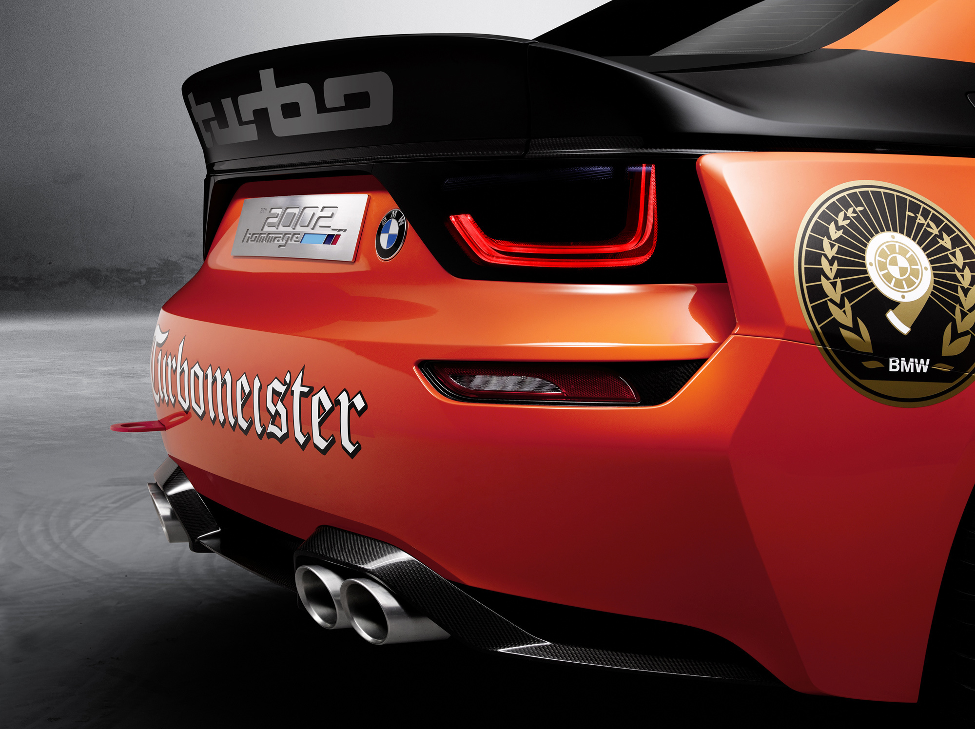 В Калифорнии двухдверка предстала перед публикой в новой ливрее, подражающей раскраске некоторых боевых BMW прошлого (в том числе M1, 3.0CSL и E30 M3). Слева вверху — отреставрированный в наши дни BMW 2002, который зрители видели на гонках Trans Am в начале 1970-х. А надпись Turbomeister на концепте, это шутливая отсылка к рекламе ликёра Jägermeister, которая много лет красуется на гоночных BMW, в том числе и серии 02.