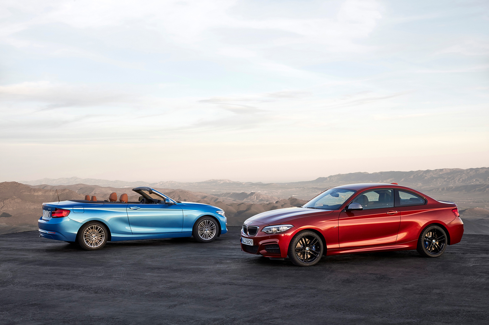 Тогда же в Старом Свете и России начнётся реализация рестайлинговых двухдверок BMW второй серии, хотя к нам кабриолеты больше ввозить не планируют. Зато это полноценный фейслифтинг, ведь «двушки» BMW находятся на конвейере с ноября 2013 года, то есть уже половину жизненного цикла. Снаружи разница с дореформенной моделью скромна, но она есть. Немцы подретушировали головную оптику, которая теперь изначально полностью светодиодная. Форма «ангельских глазок» стала угловатой, расширилась дуга над линзами. Больше стали секции решётки радиатора, слегка изменилась конфигурация воздухозаборников в переднем бампере. Сзади же появились светодиодные фонари с иной архитектурой.