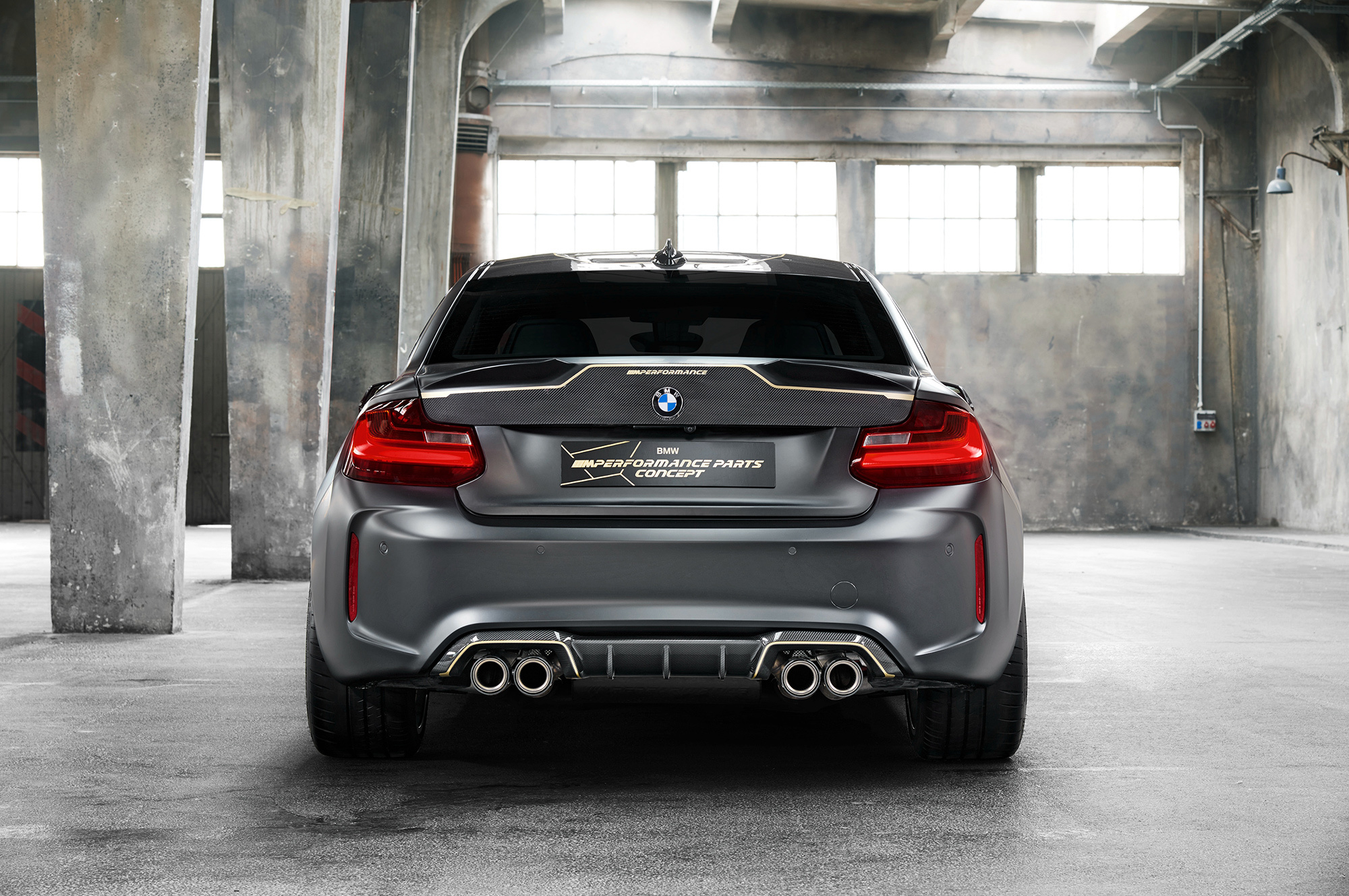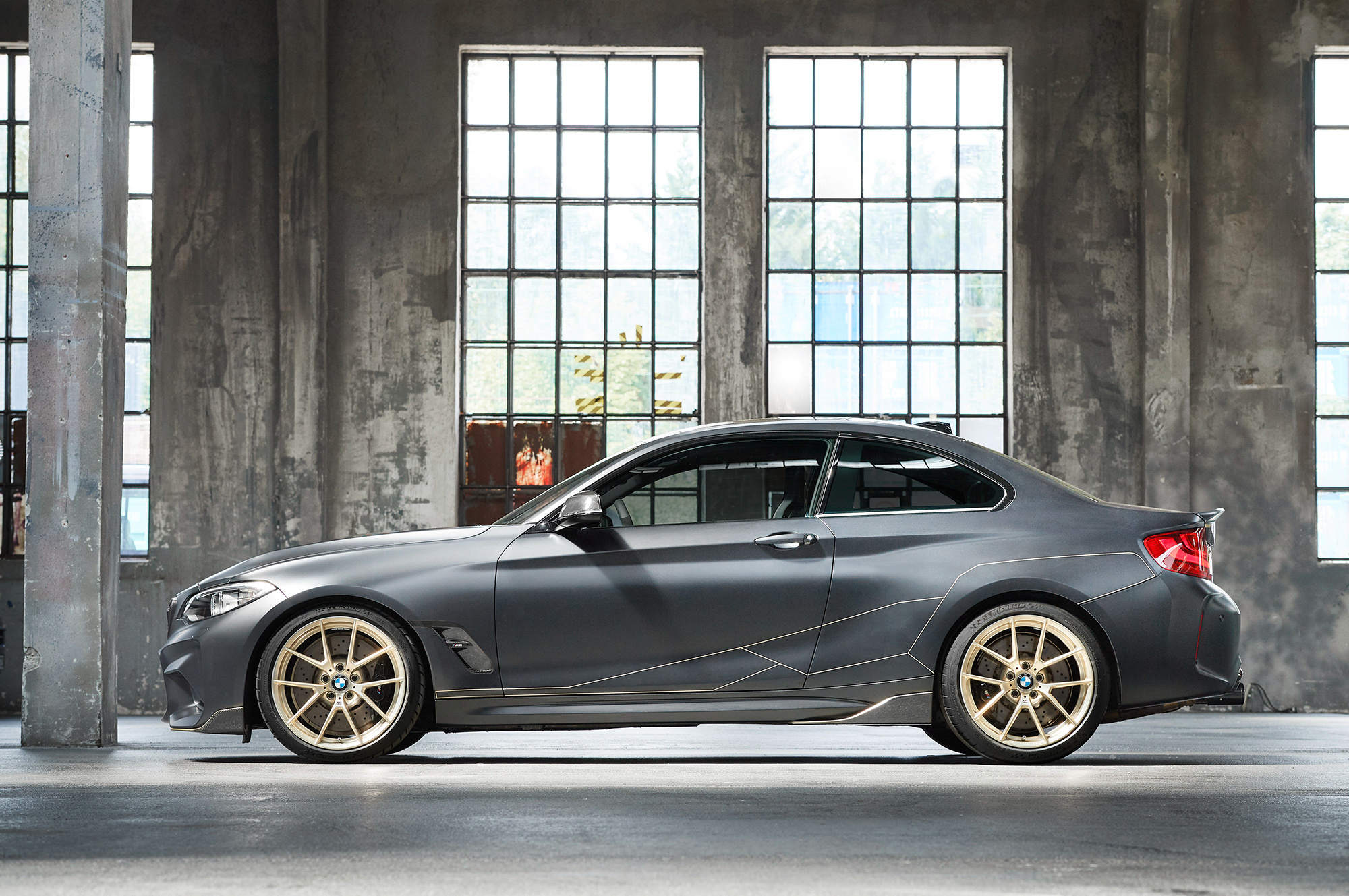 Концепт-кар с говорящим названием демонстрирует возможности, которые клиентам дарят фирменные части M Performance. Так, владельцы самой маленькой «эмки» могут облегчить её на 60 кг установкой внешних деталей из углепластика. Опциональные капот и передние крылья сэкономят восемь и три килограмма, а композитная крыша ― ещё шесть. На столько же легче стандартных легкосплавных колёс кованые 19-дюймовые. Дополнительно можно заказать углеволоконные крышку багажника (–5 кг) и диффузор (–0,5 кг). А ведь из этого жёсткого, но лёгкого материала выполнены решётка радиатора, винглеты в переднем бампере и порогах, окантовка прорезей в передних крыльях.