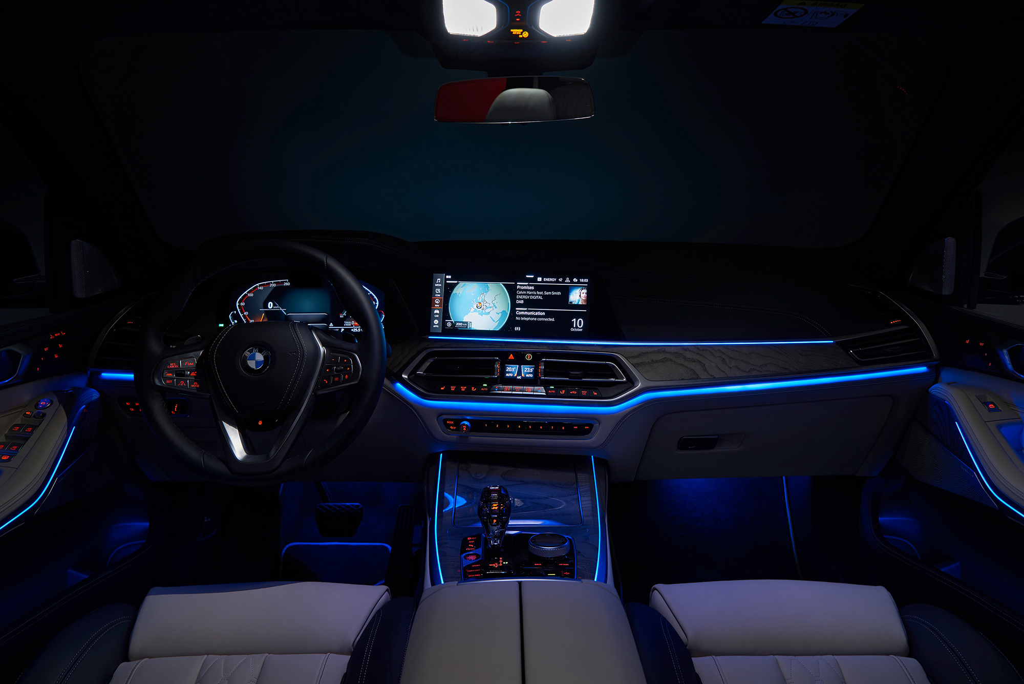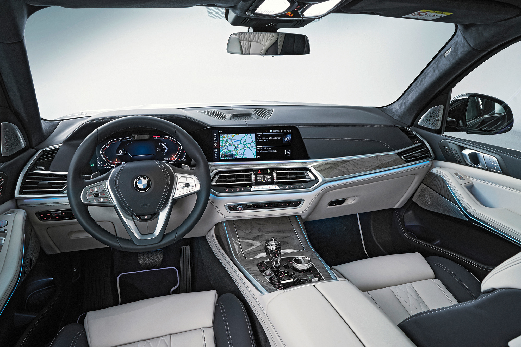 Интересно, что за доплату количество мест в салоне не увеличивается, а сокращается до шести, поскольку «в базе» BMW X7 — семиместный. (Если сложить задние ряды сидений, объём багажника вырастет с 326 до 2120 л.) Водителя приветствует интерфейс BMW Live Cockpit Professional с двумя экранами диагональю 12,3 дюйма — цифровой приборкой и центральным дисплеем. В операционке медиацентра предусмотрен помощник BMW Intelligent Personal Assistant, отзывающийся на голосовые призывы «Hey BMW» и «OK BMW». Софт будет регулярно обновляться «по воздуху», но не во всякой стране.