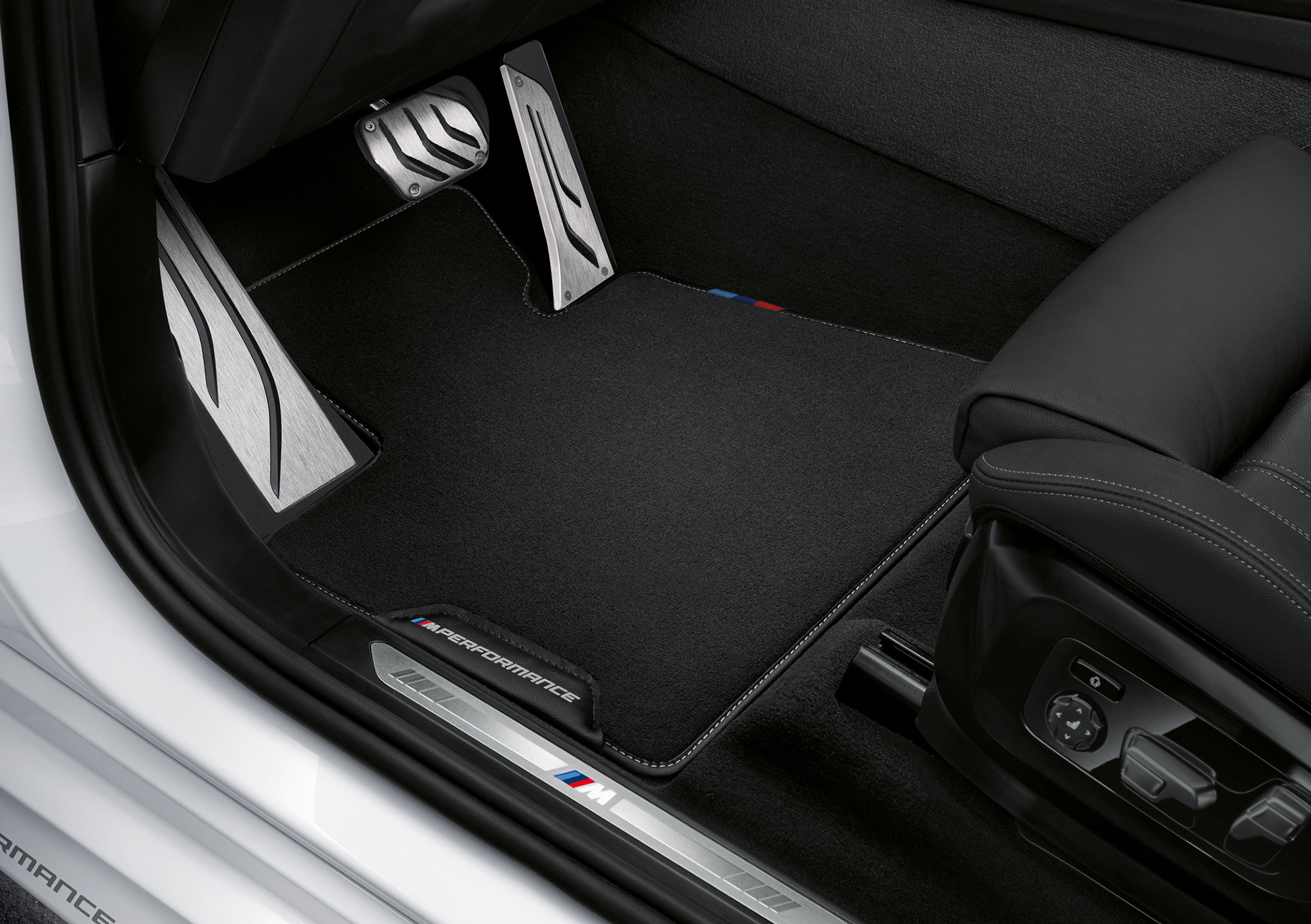 Водителям предложен набор M Performance Drive Analyser для записи множества параметров поездки, в том числе видео и координат GPS с последующим их анализом. Физически он представляет собой миниатюрный модуль OBD (бортовая диагностика), подключаемый к диагностическому разъёму машины и параллельно соединяющийся со смартфоном. Такое устройство пришло из автоспорта. А вот пара других аксессуаров — чисто баловство: набор слайдов M Performance для дверных проекторов, выдающих рисунки на асфальте, и чехол для ключа M Performance из алькантары и с углепластиковой вставкой.