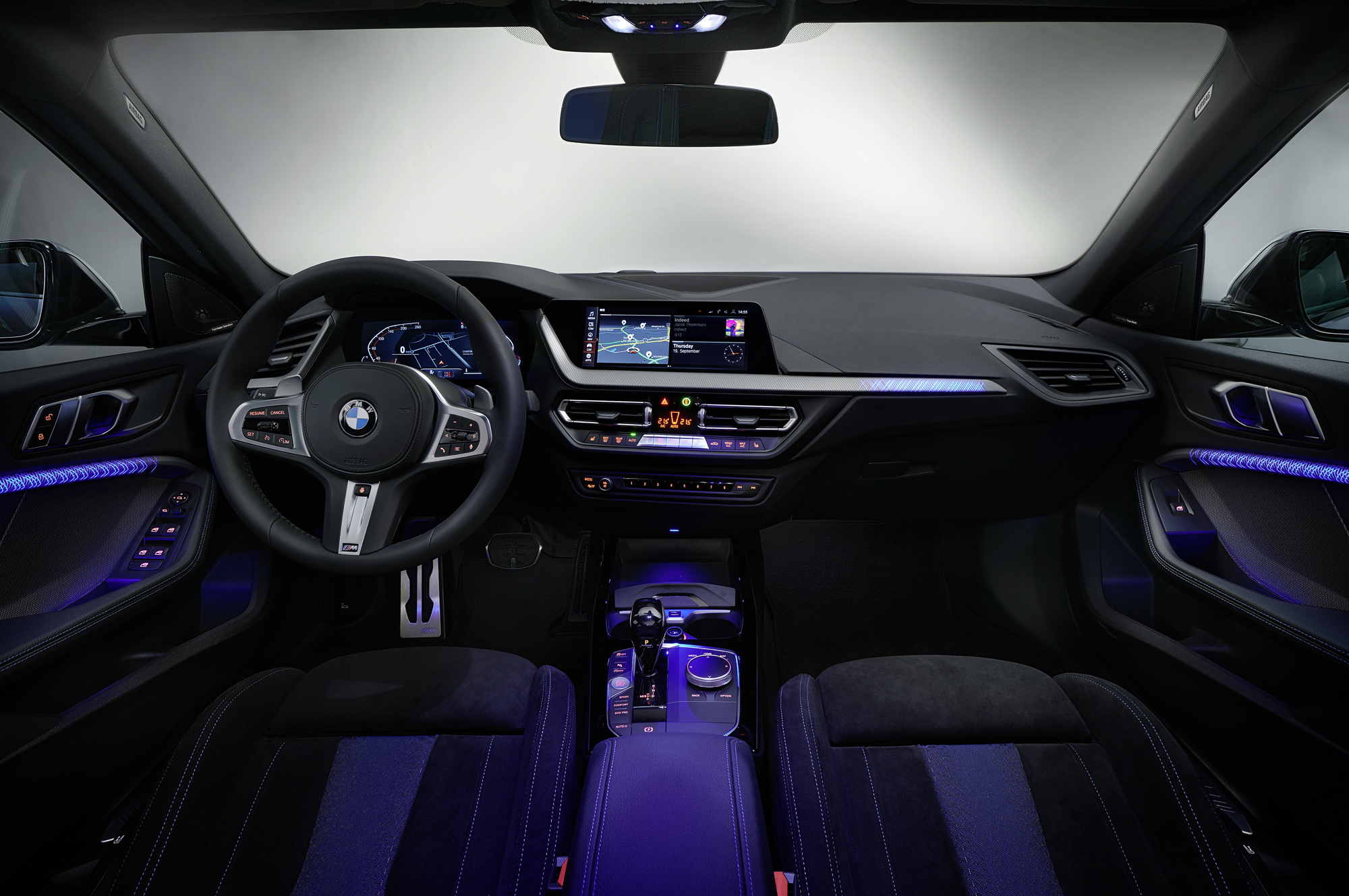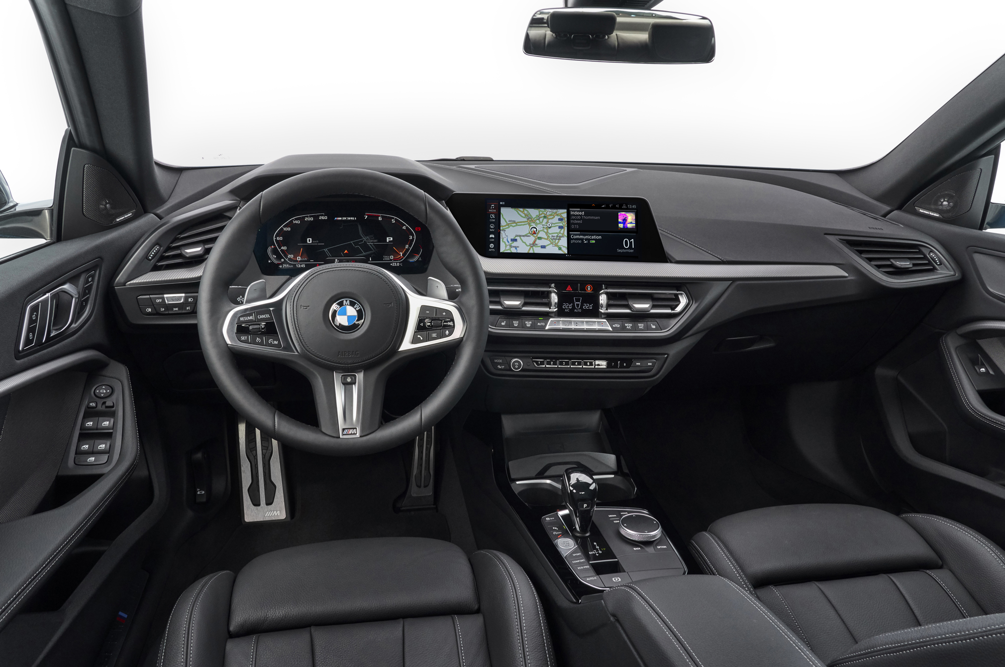 В стандартное оснащение седана входят светодиодные фары, как опцию можно докупить светодиодные адаптивные. Как и на хэтчбеке первой серии, интегрированный актуатор ARB отвечает за более оперативное подавление пробуксовки. К услугам водителя масса помощников, включая активный ассистент движения в полосе и автоматическое торможение с обнаружением пешеходов. При покупке опциональной системы BMW Digital Key седан можно открывать со смартфона.
