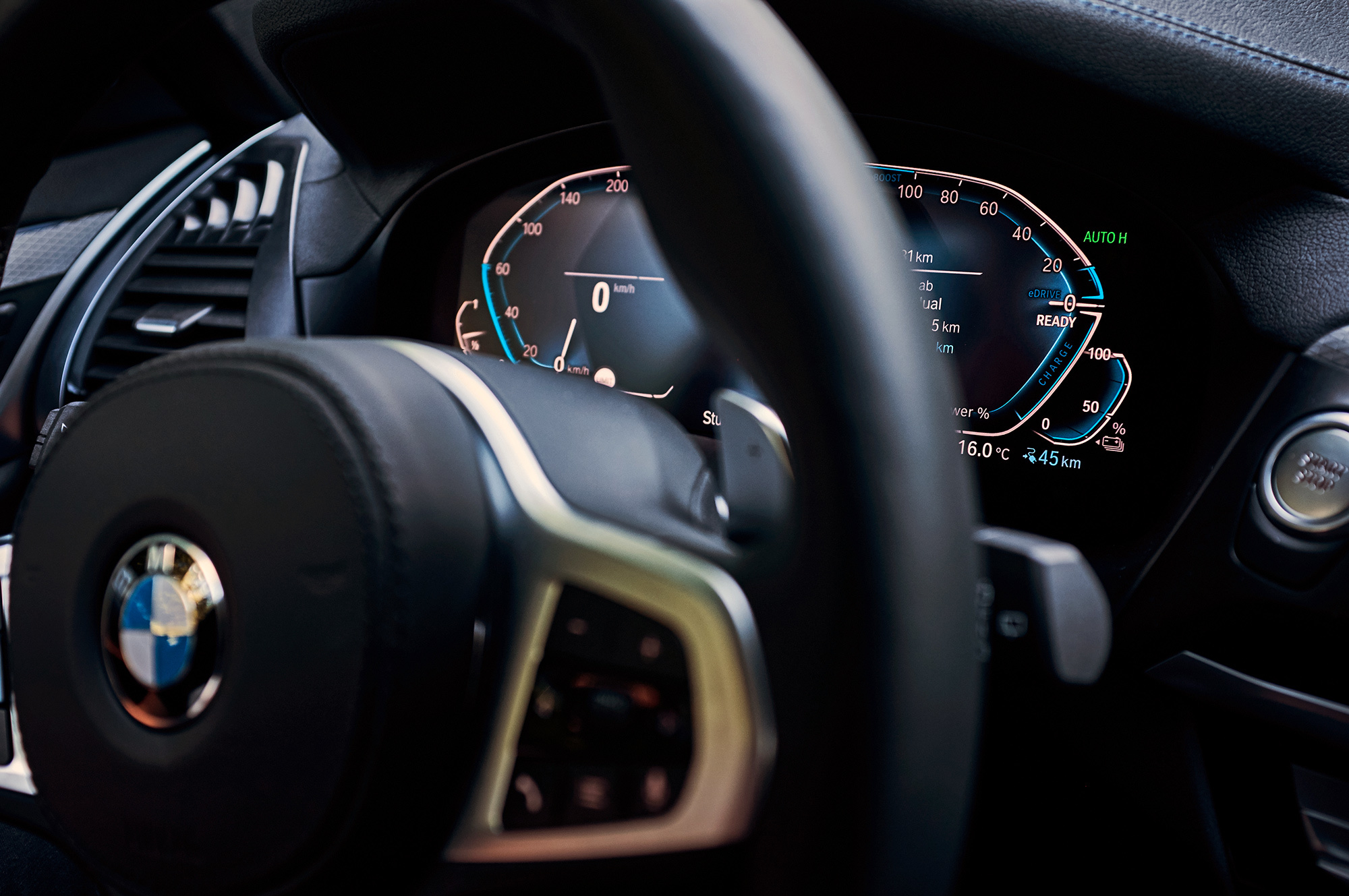 На чистой электротяге в режиме Max eDrive X3 способен развить 135 км/ч, а заявленный запас хода составляет 46-41 км по циклу WLTP. У конкурентов этот показатель немного скромнее. Помимо нормального гибридного режима Auto eDrive предусмотрена программа Battery Control, согласно которой машина использует ДВС для поддержания заряда в батарее. Таким образом, вы не останетесь без электричества, например, при въезде в зону нулевых выбросов какого-нибудь европейского города. От бытовой розетки литий-ионная батарея полностью заряжается менее чем за шесть часов или за три с половиной от настенного комплекса BMW i Wallbox, выдающего ток мощностью до 22 кВт.