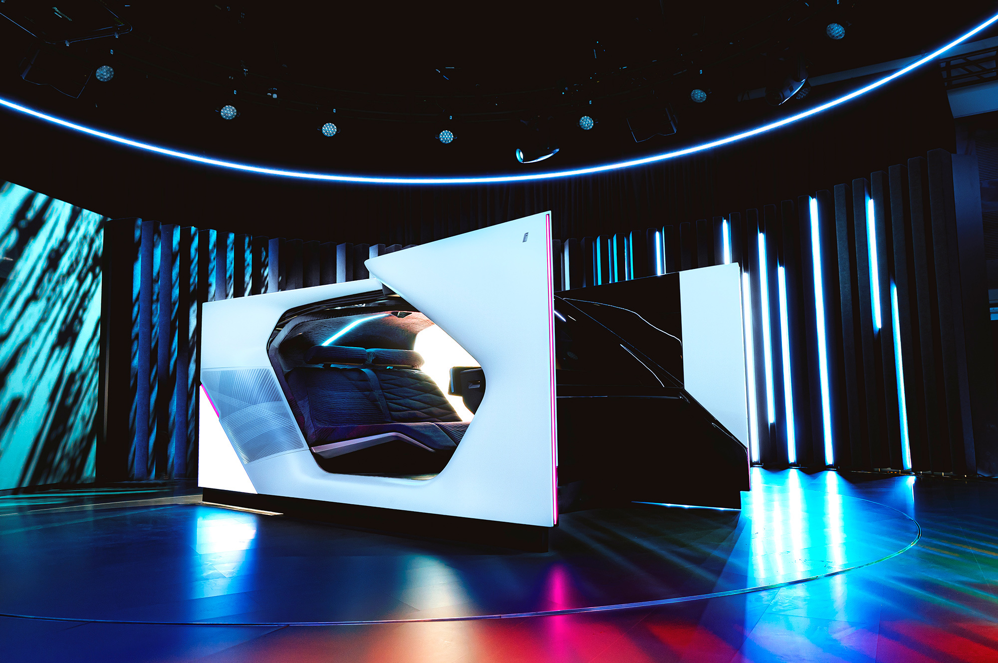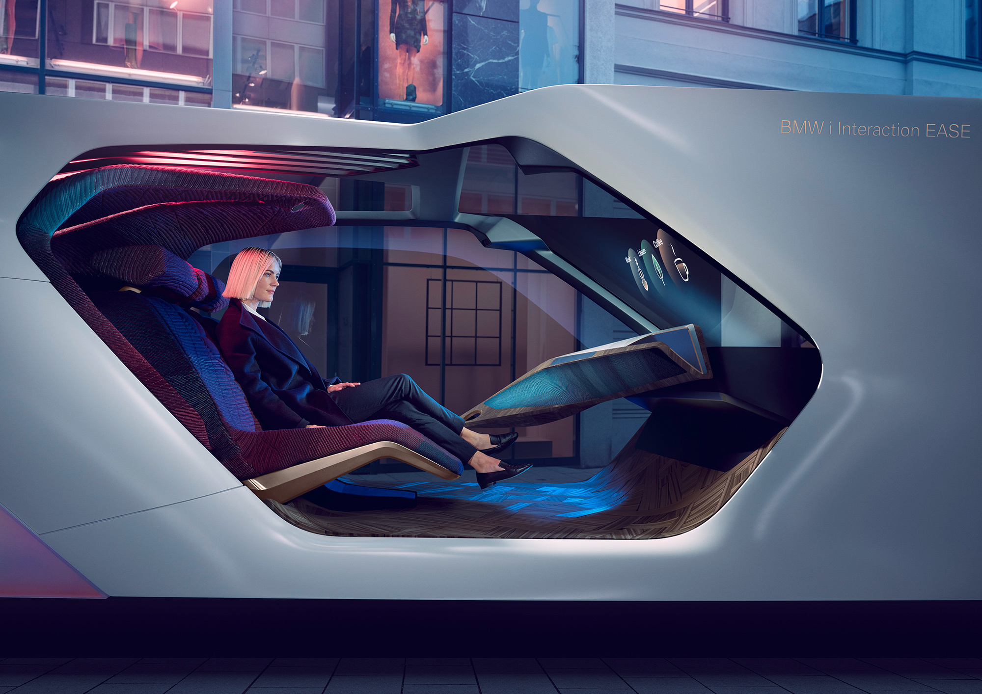 Кабина работает в трёх режимах: Explore — это исследование пространства вокруг автомобиля с подсказками дополненной реальности, Entertain — кинотеатр с окружающей подсветкой, Ease — релакс на сиденье в «положении невесомости» с расслабляющими музыкой и светом. «Пассажиры начинают своё путешествие с ощущения, что они уже прибыли в пункт назначения», — заявляет BMW, будто забывая, что ощутившие прибытие обычно покидают машину без промедления. Функции из набора BMW i Interaction Ease первым использует кроссовер iNext в 2021 году.