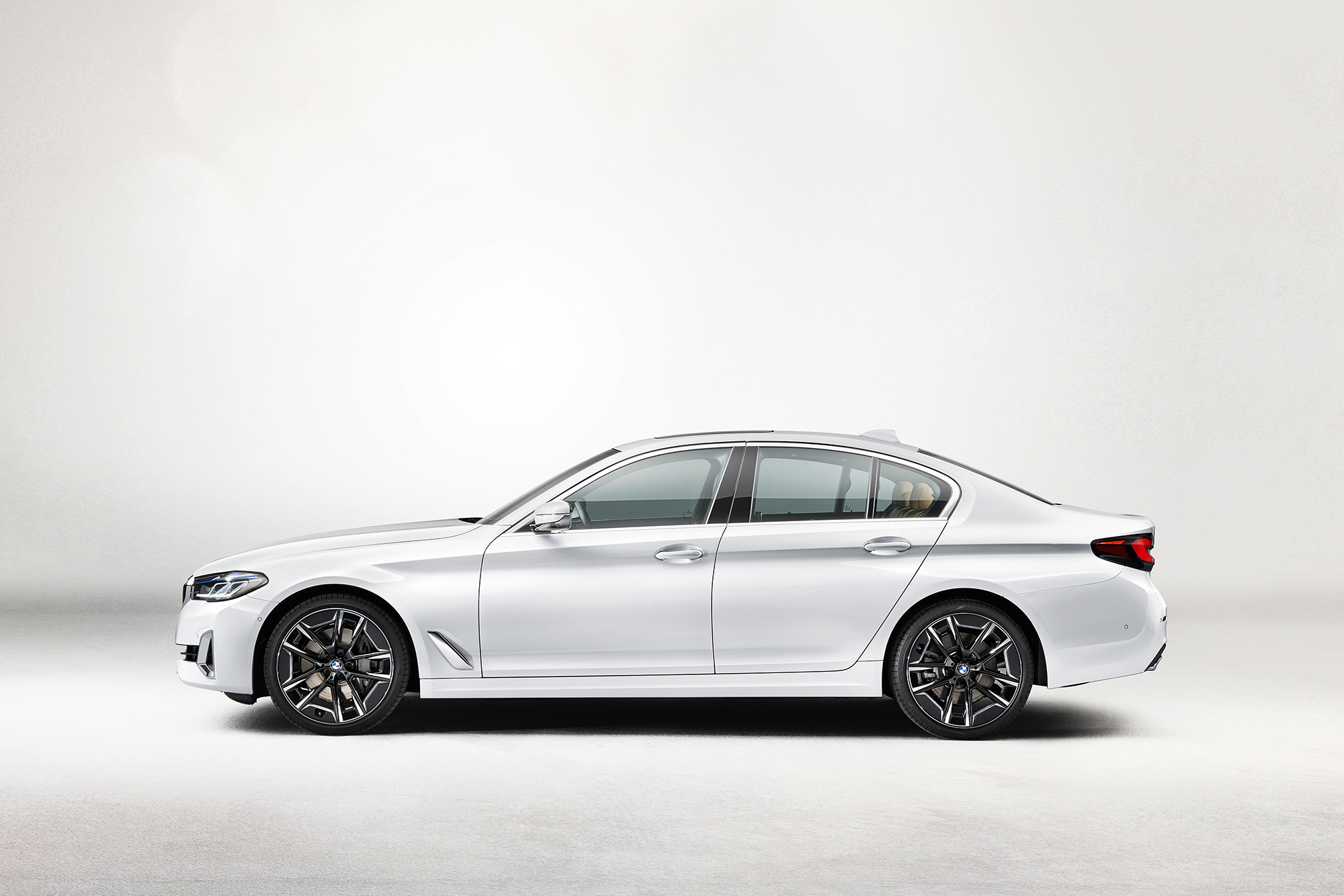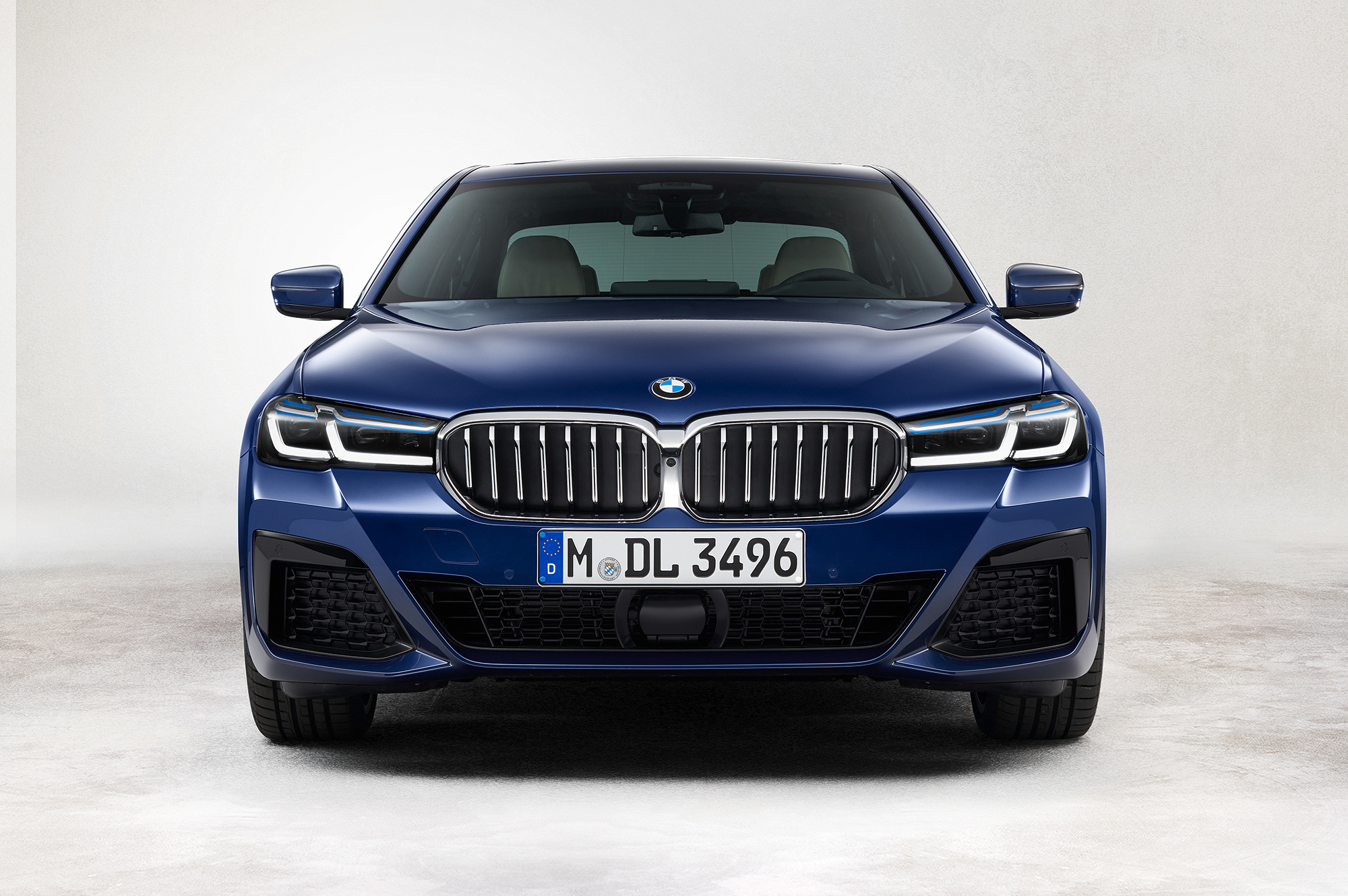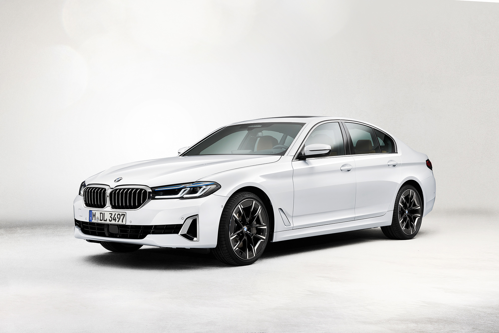 С внешностью обновлённой BMW пятой серии мы знакомы. Изменений снаружи много. Иные теперь решётки радиатора с гранёными планками, светодиодные фары, которые могут быть матричными и лазерными, и фонари с другим диодным рисунком, а трапециевидные патрубки положены теперь всем «пятёркам». Не остались без внимания и бамперы: передний теперь с новой конфигурацией воздухозаборников и декоративными элементами, а у заднего — переделанный диффузор. Плюс свежие цвета кузова и легкосплавные колёса в гамме. В салоне изменились руль, сиденья, мультимедийная система и варианты оформления.