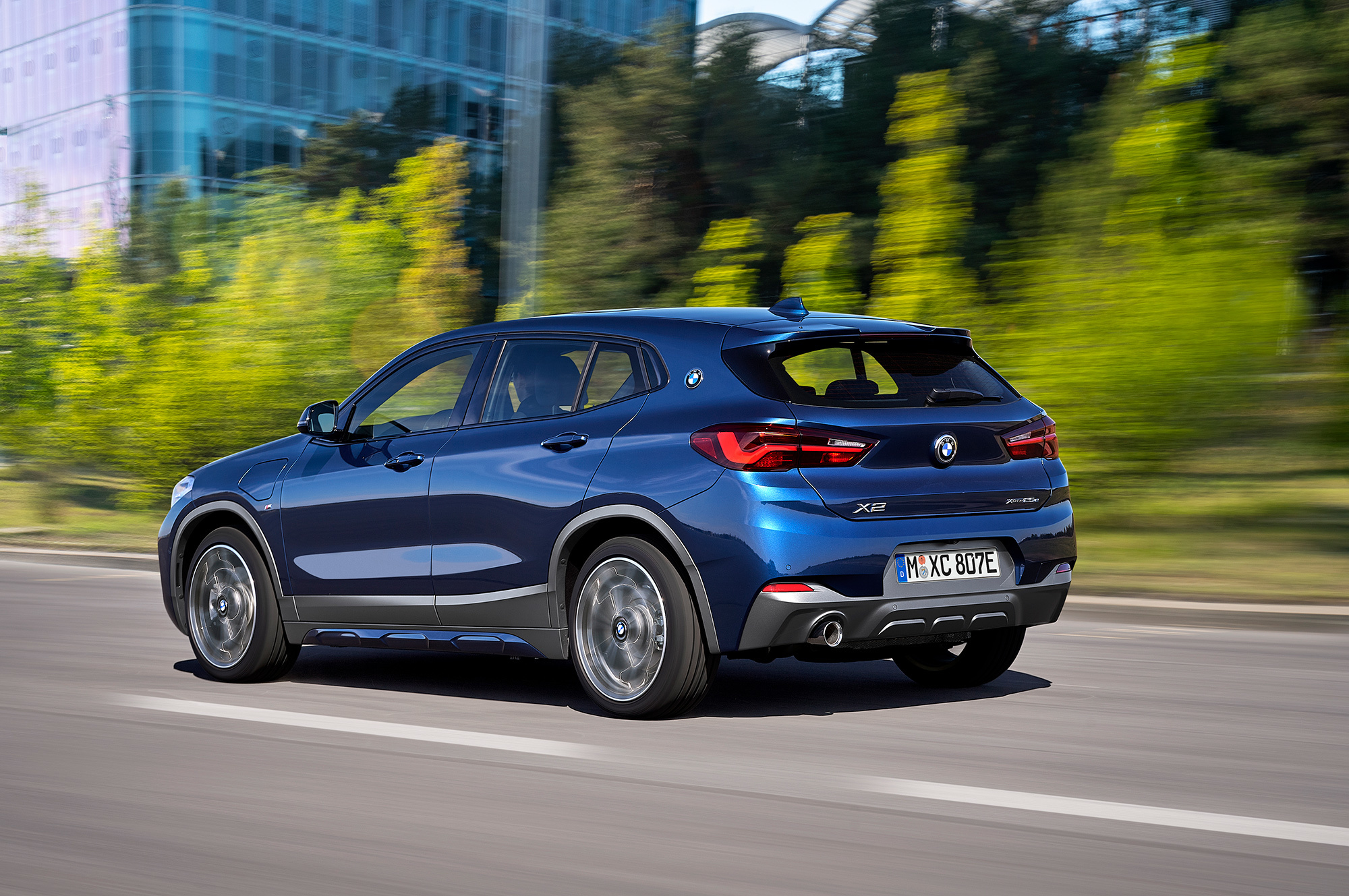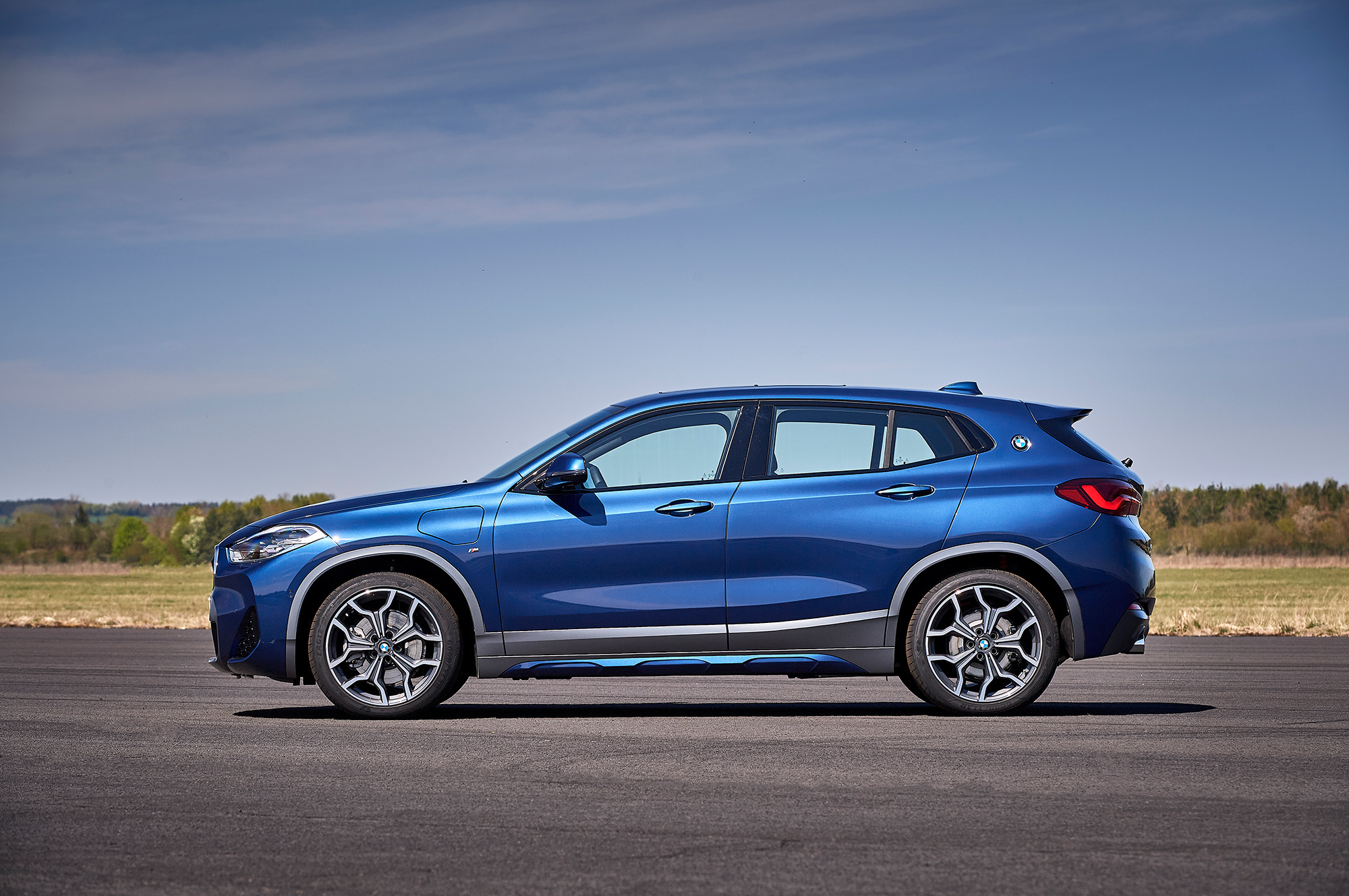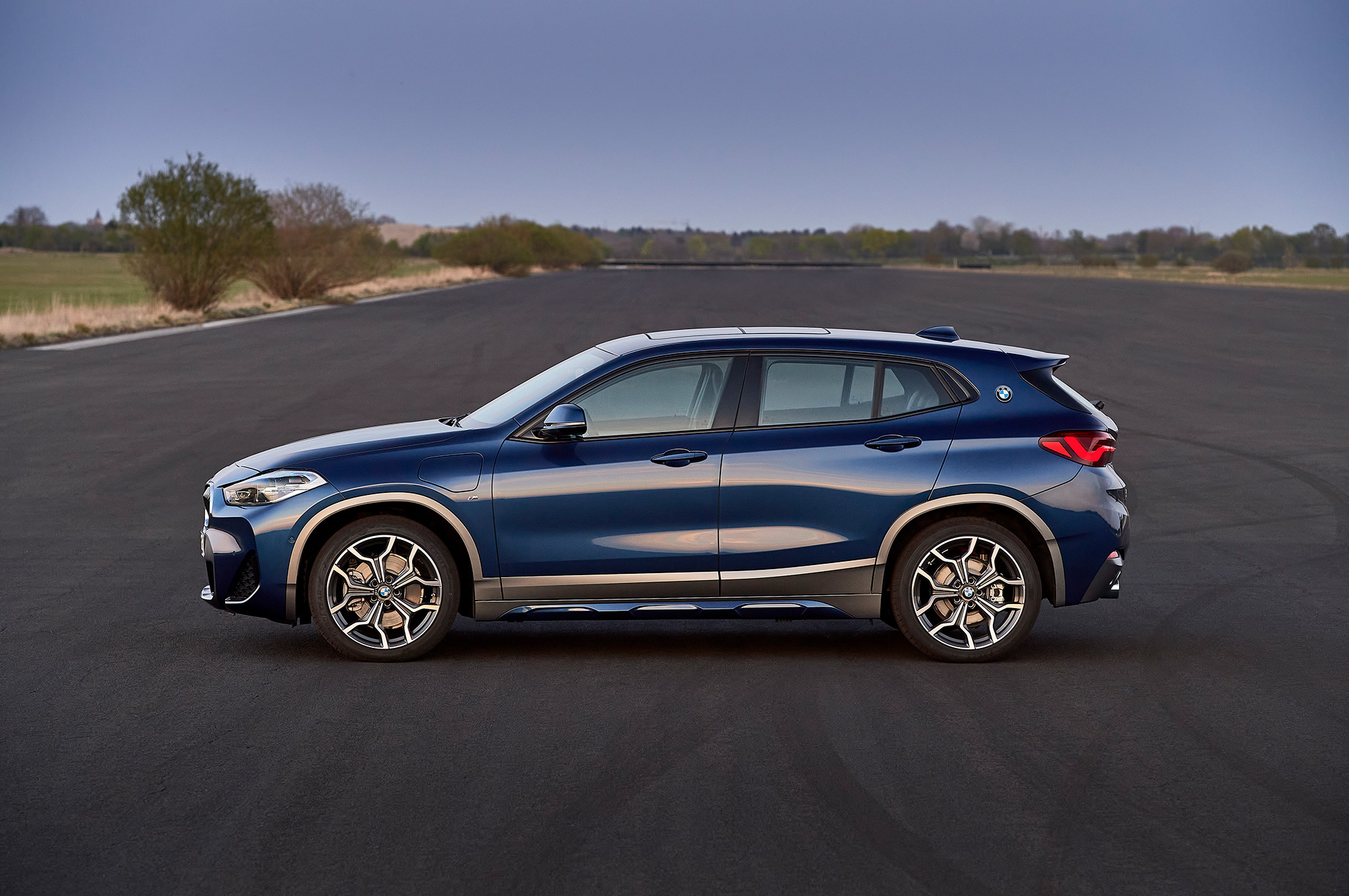 Компания BMW добавила в ассортимент кроссовера X2 заряжаемую от сети вариацию xDrive25e, технически повторяющую показанный в прошлом году BMW X1 xDrive25e. Бензиновая турботройка 1.5 (125 л.с., 220 Н•м) отправляет тягу на передние колёса через шестиступенчатый «автомат» Steptronic, а на задней оси трудится отдельный электромотор с отдачей 95 л.с. и 165 Н•м. Комбинированная отдача всей установки составляет 220 л.с. и 385 Н•м. Она позволяет «икс-второму» набирать сотню с нуля за 6,8 с и развивать максималку 195 км/ч. В чисто электрическом режиме можно достигнуть 135 км/ч. Ради снижения аэродинамического сопротивления подвеска гибрида занижена на 10 мм, в сравнении с обычными X2.