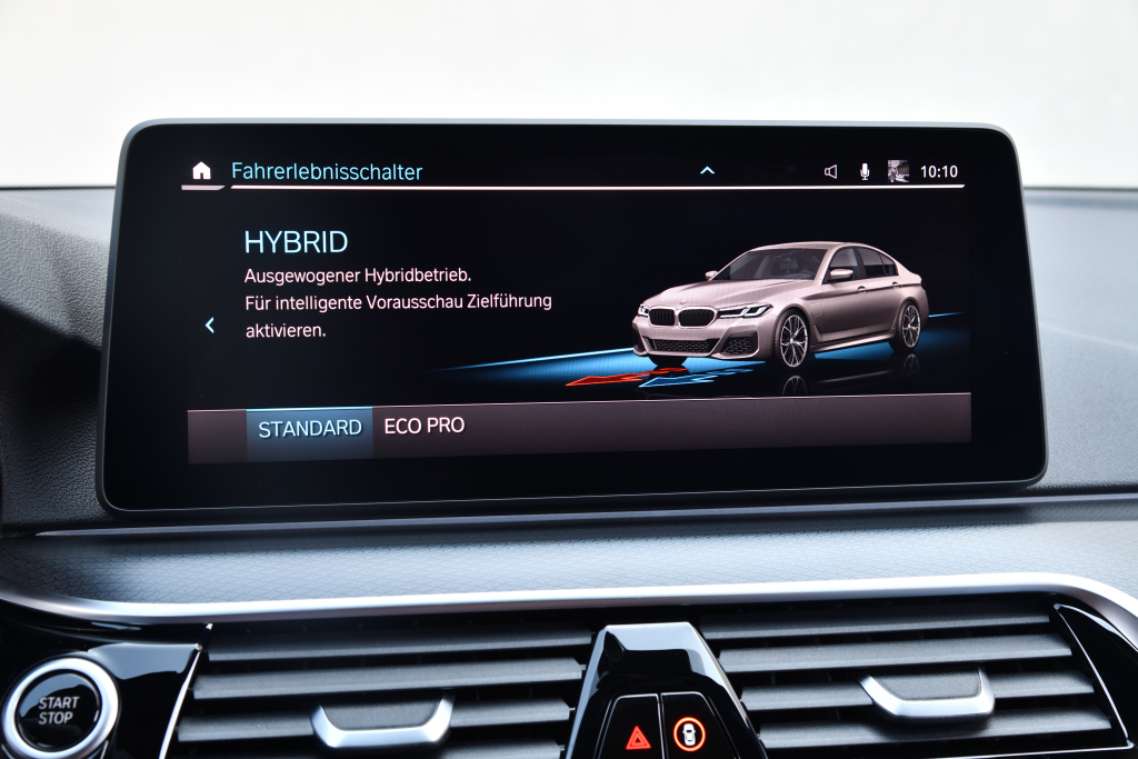 В отличие от остальных гибридов пятой серии «пятьсот сорок пятая» отличается наличием шестицилиндрового двигателя. Трёхлитровый рядный агрегат, выдающий 286 л.с., сочетается с синхронным электромотором и восьмиступенчатым «автоматом». Суммарная отдача силовой установки достигает 394 сил и 600 Н•м, что позволяет ускоряться до сотни за 4,7 с и развивать 250 км/ч (ограничены электроникой). На одной электротяге седан может проехать до 57 км и разогнаться до 140 км/ч, а расход топлива в смешанном цикле не превышает 2,4 л/100 км. Автомобиль оснащён 400-вольтовой литий-ионной батареей, расположенной под задним диваном. Из-за этого частично урезан и объём багажника — с 530 л до 410.