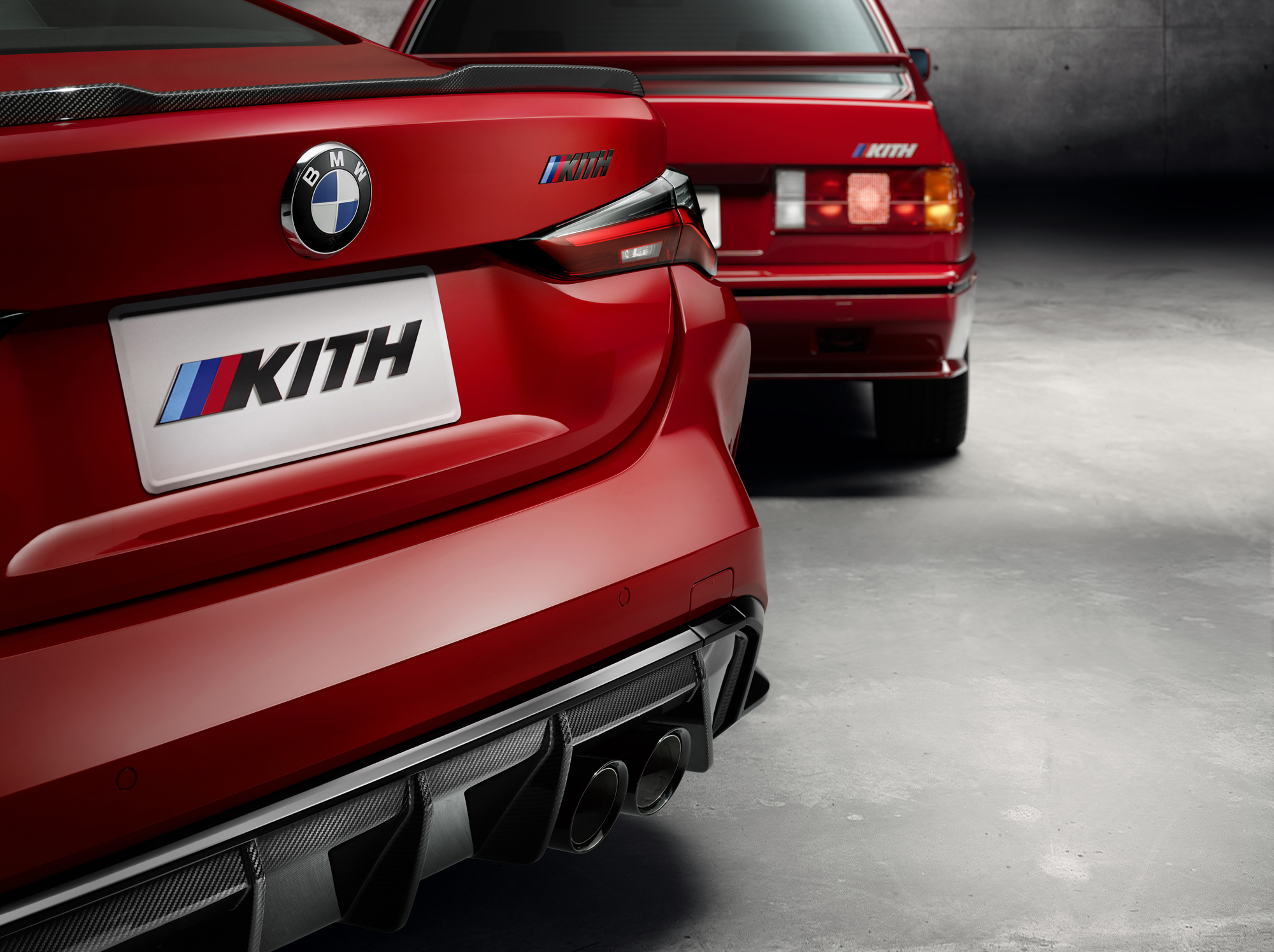 Помимо M4 Competition x Kith компания показала два уникальных автомобиля. Это E30 M3, купленный недавно Ронни Файгом и доработанный в BMW, а также BMW M4 Design Study by Kith — современная «эмка», окрашенная в тот же исторический колер Cinnabar Red, что и E30, и снабжённая логотипом Kith на крышке багажника вместо надписи M4 Competition. Эта пара призвана рекламировать проект M4 Competition x Kith (она выставлена в магазине Kith в Бруклине) и создать некую визуальную связь нынешней «эмки» от Kith c предком родом из восьмидесятых.