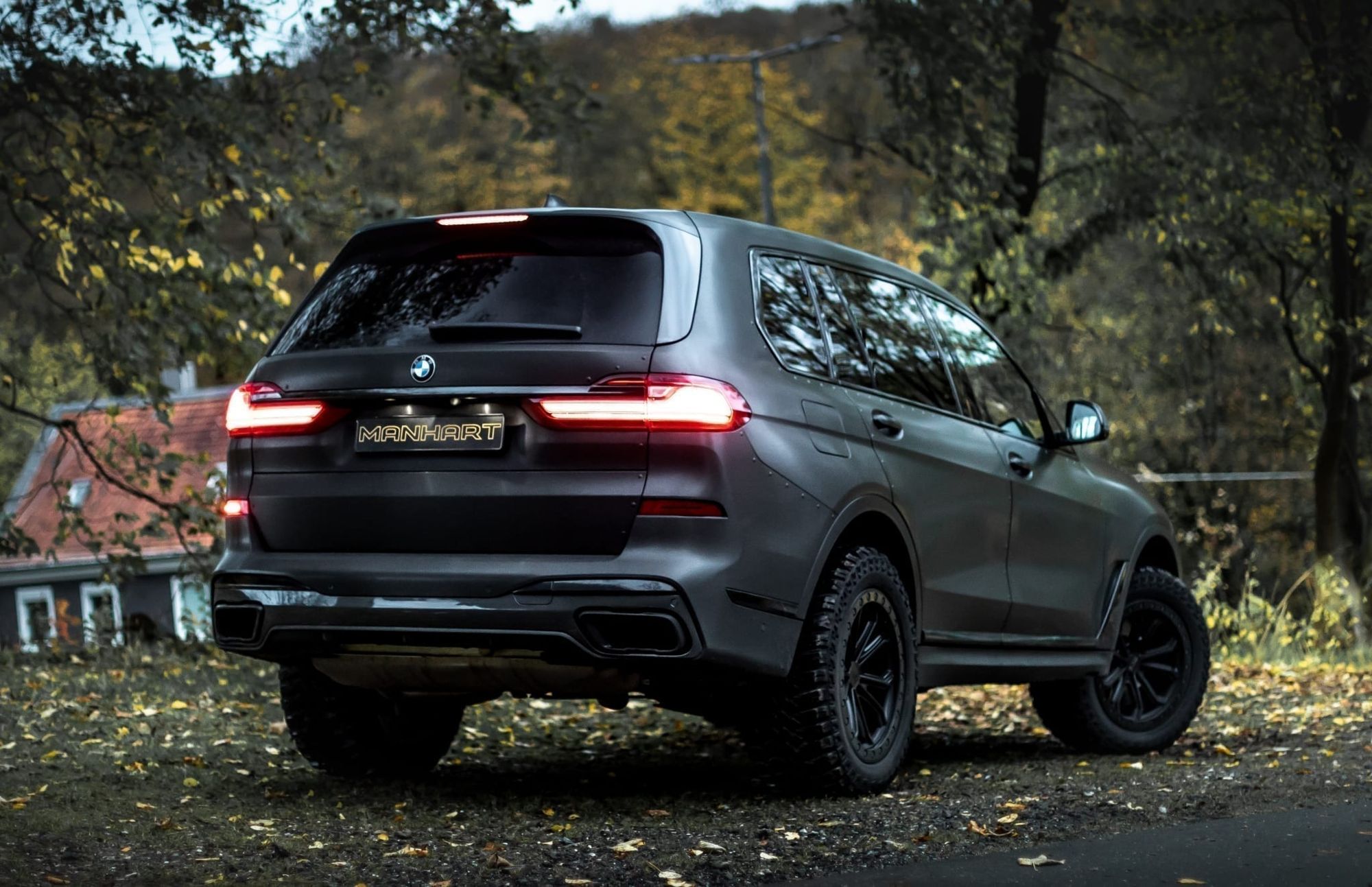 Особой популярностью сухопутный лайнер BMW X7 у тюнеров не пользуется. Но те немногие ателье, что берутся за его доработку, действуют по одной схеме — расширить, занизить, оспортивить. Хороший пример — деятельность бюро Lumma Выделиться на этом фоне пока решились только специалисты фирмы Manhart. Они взяли BMW X7 в исполнении M50i с восьмицилиндровым 530-сильным двигателем (750 Н•м) и постарались превратить дорогой семейный кроссовер в покорителя бездорожья под названием MHX7 650 Dirt Edition 2. И никаких агрессивных обвесов и больших колёсных дисков с шинами-изолентой!