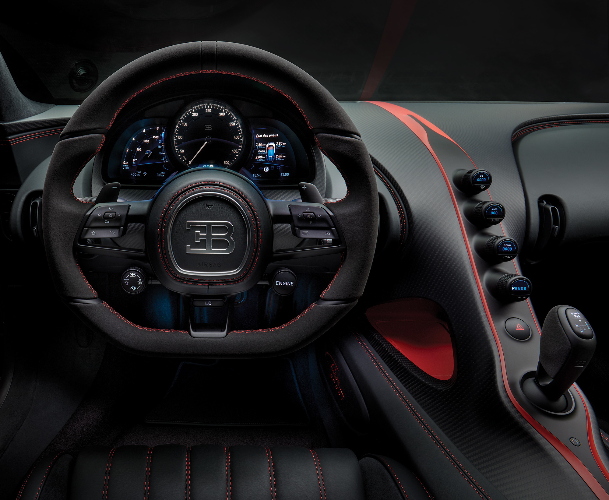 Авторы гиперкара посчитали, что мощность базового Широна вполне достаточна для всех задач. А потому мотор остался нетронутым. Напомним, что в исходнике стоит наддувный агрегат W16 8.0 с отдачей в 1500 л.с. и 1600 Н•м. Не поменялись и паспортные показатели динамики, хотя Chiron Sport сделан на 18 кг легче исходного Широна. Но цель была иной: более точное и быстрое прохождение связок поворотов. И она достигнута: трасса для тестов управляемости Нардо на юге Италии новеньким Спортом преодолевается на пять секунд быстрее исходного Широна.