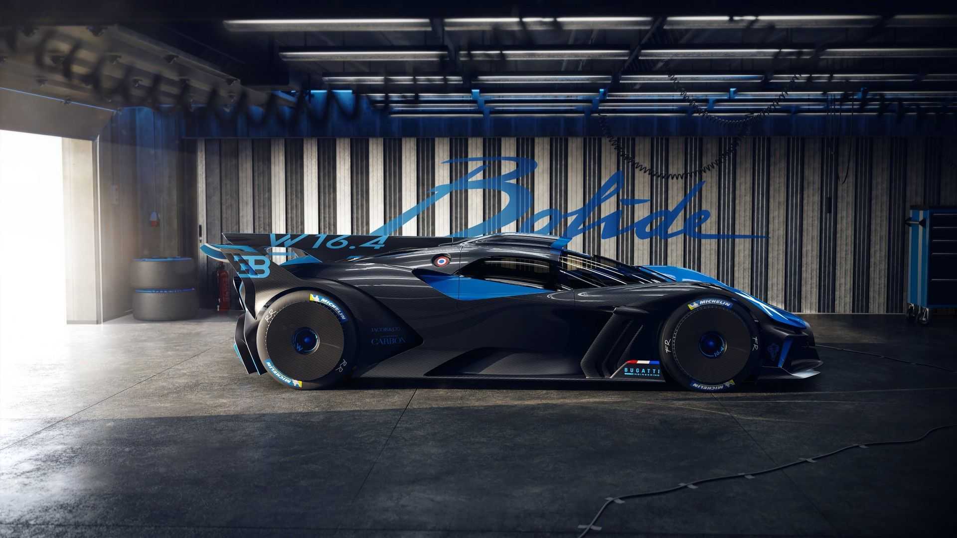 В представленном сегодня трековом суперкаре Bugatti Bolide квадротурбомотор W16 8.0 выдаёт 1850 л.с. (на 250 выше, чем у Centodieci и Super Sport 300+), что при сухой массе купе в 1240 кг (примерно на семь центнеров меньше, чем у «облегчённого» Широна Pur Sport) приводит к безумному соотношению массы и мощности в 0,67 кг/л.с. Крутящий момент достигает 1850 Н•м.