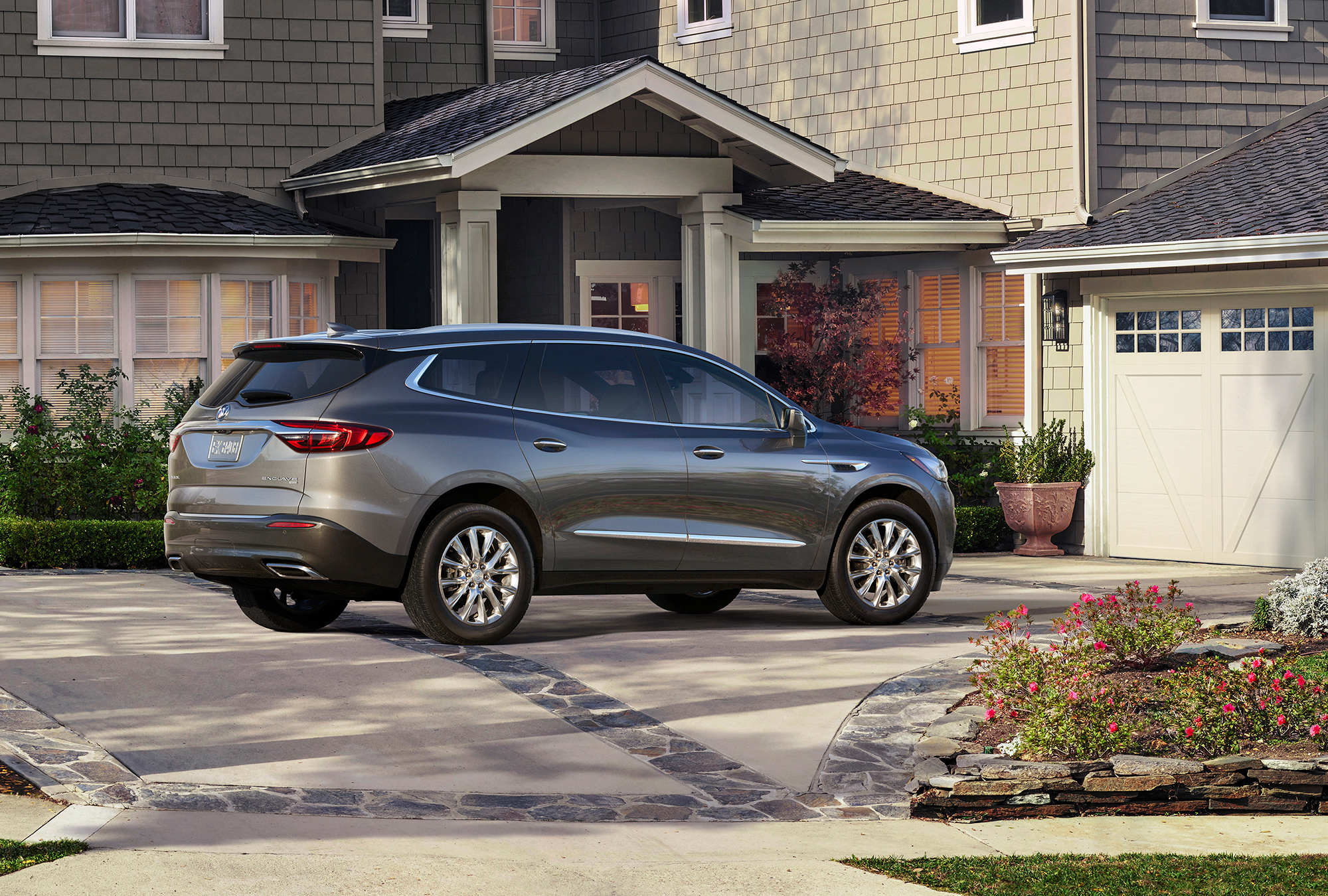 В базовое оснащение Энклейва входят семь подушек безопасности, в том числе так называемая центральная боковая (между водителем и передним пассажиром), помогающая обоим избежать травм при боковом ударе. Такой тип эйрбэга дебютировал на Траверсе ещё в 2012 году. Есть система предупреждения о фронтальном столкновении, мониторинг поперечного трафика сзади, ассистент удержания на полосе, кресло Safety Alert Seat, вибрацией предупреждающее водителя об уходе со своего ряда или приближении к другой машине.