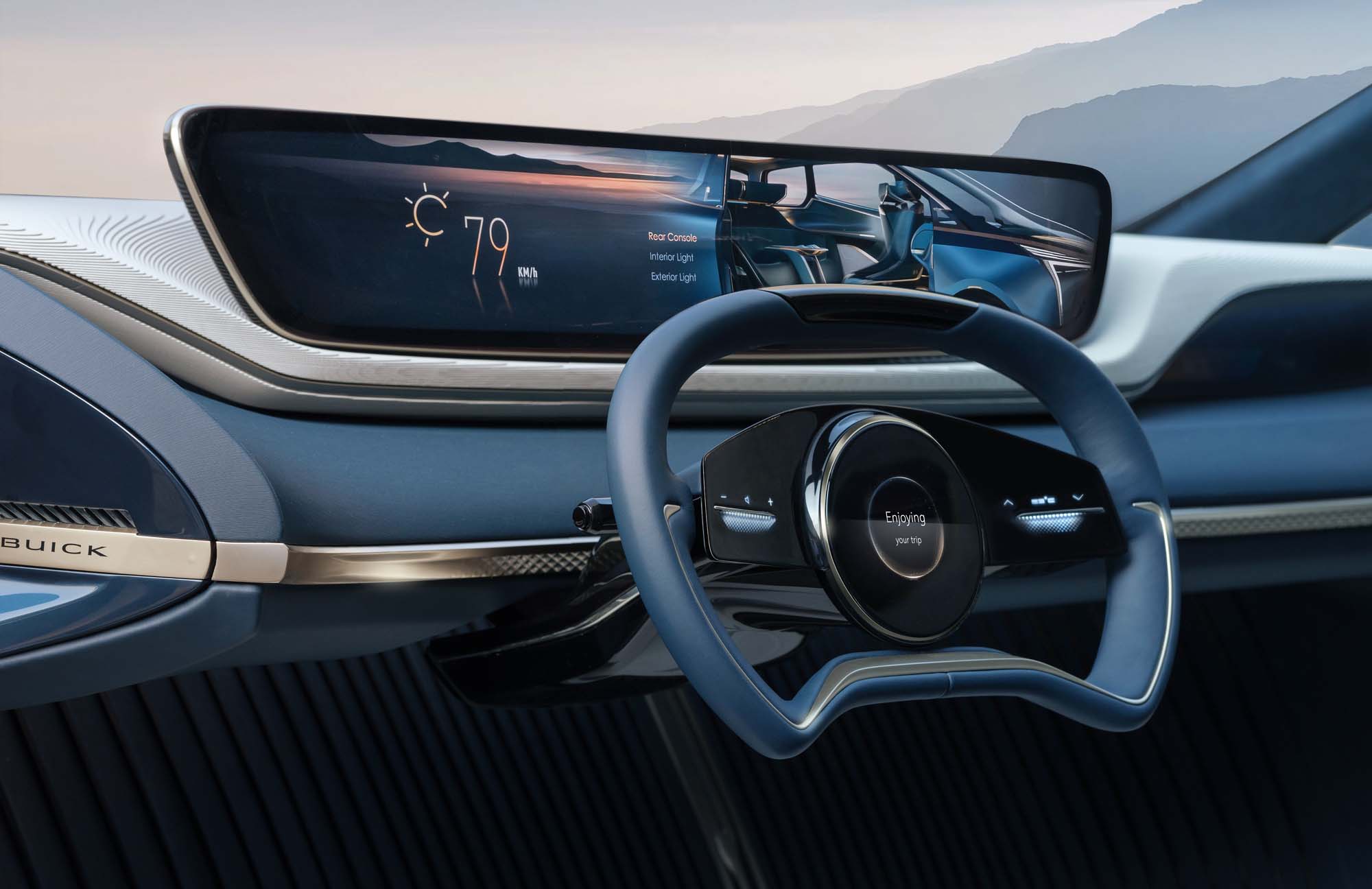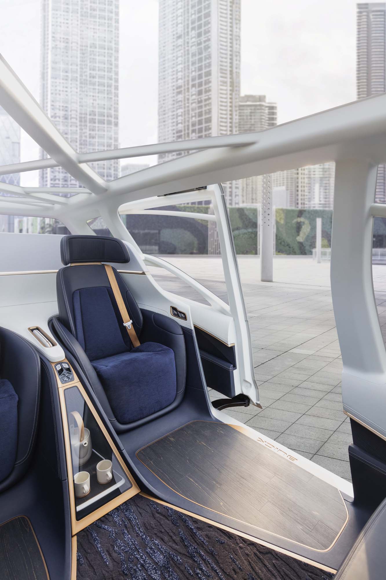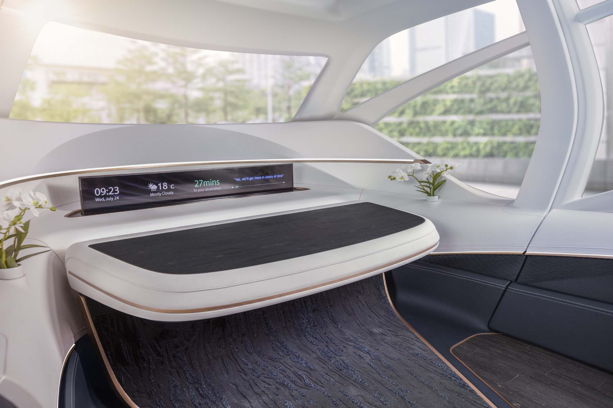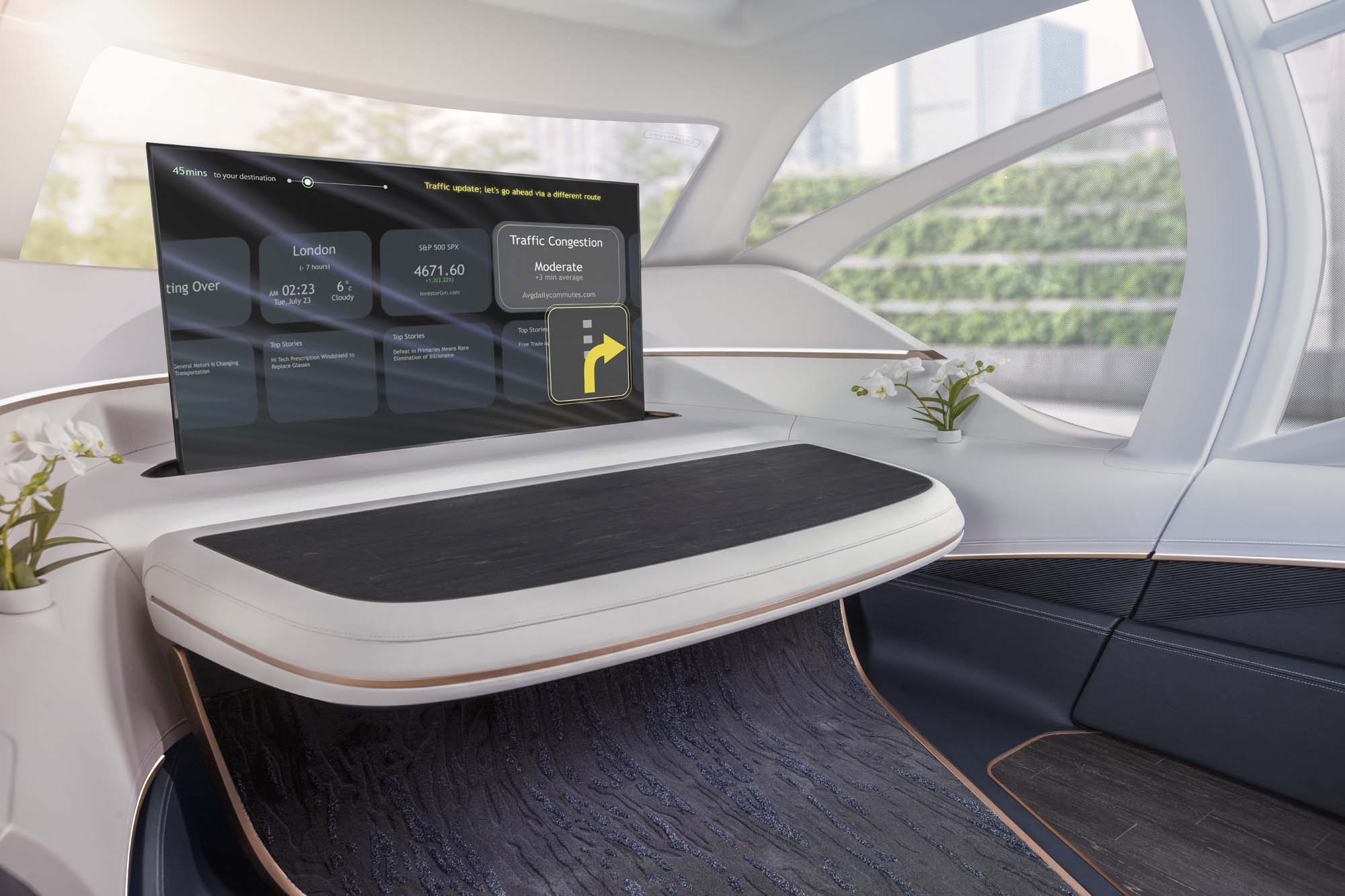 Наружное освещение на светодиодах демонстрирует различную анимированную графику, приглашая в салон с огромной площадью остекления и трансформируемой «мебелью», отделанной с применением натуральных материалов. Автомобиль понимает голосовые команды и отслеживает вгляд пользователей, предлагая благодаря системе искусственного интеллекта различные функции информационно-развлекательной системы. Связь с внешним миром, ради работы или отдыха, возложена на 50-дюймовый выдвижной экран.