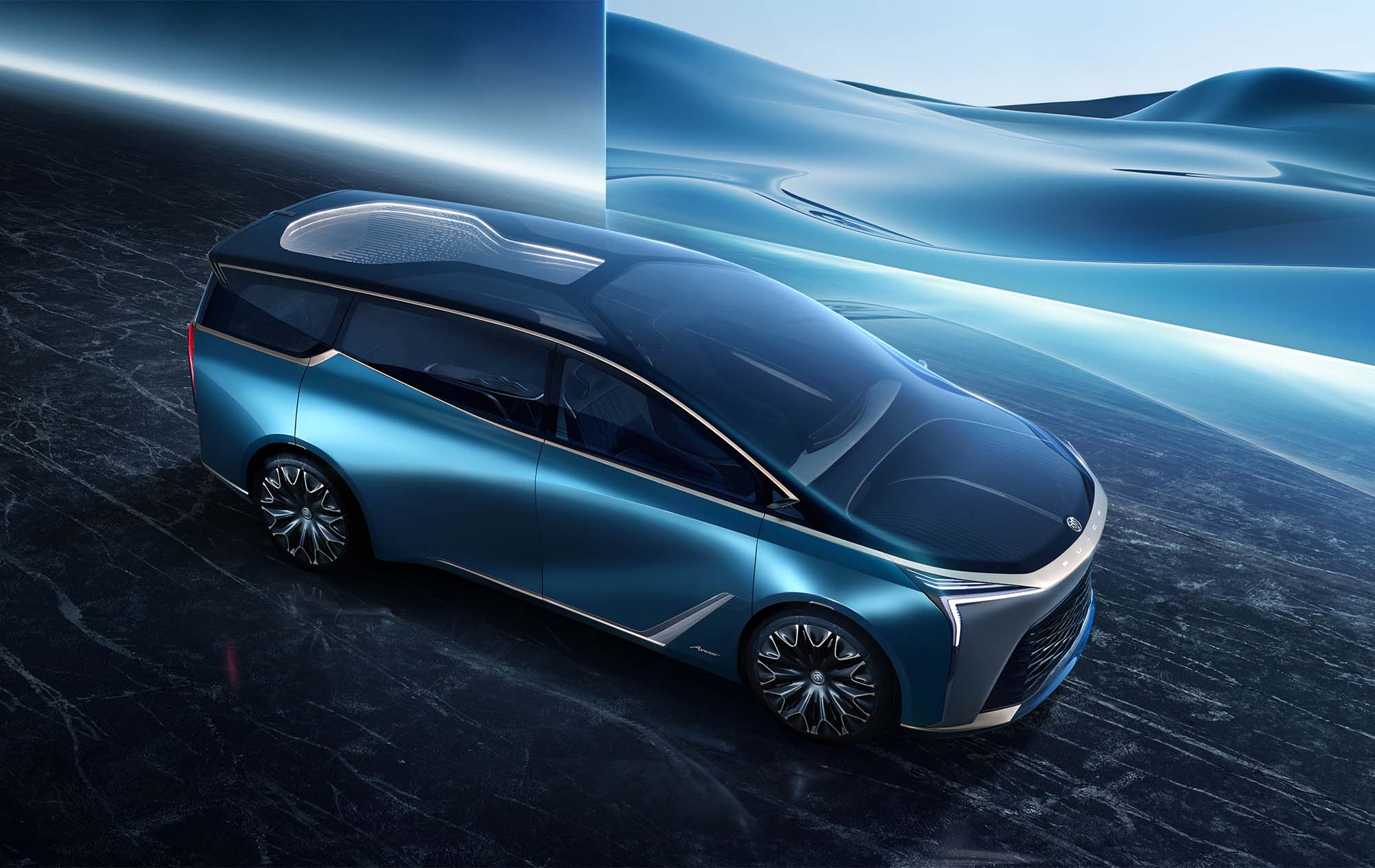 Созданный в Паназиатском техническом центре PATAC в Шанхае минивэн тоже умеет ездить автономно — при помощи системы связи машины и инфраструктуры V2X. Фары различными сигналами поддерживают связь с пешеходами и другими транспортными средствами. Внутри под панорамной крышей можно найти трансформируемый интерьер, 30-дюймовый дисплей, сенсорный экран на руле, проекционный дисплей, выводящий картинку на всю ширину лобового стекла, аудиосистему с динамиками в подголовниках и поднос для чая. Проект, как пишет компания, вдохновлён китайскими горными и водными пейзажами. О сроках появления похожего по дизайну серийного вэна разработчики не говорят.
