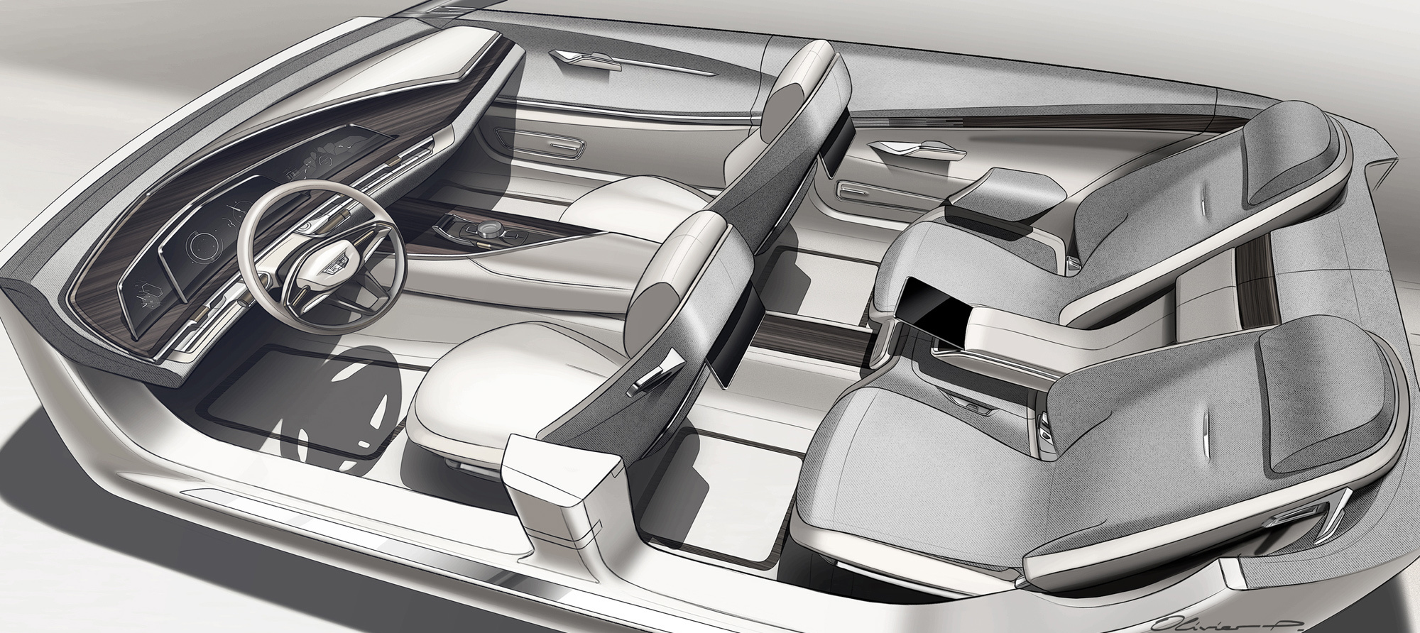 Потому под рукой водителя — сенсорные кнопки и контроллер с изображением «летающей богини» внутри (дань исторической носовой фигурке Кадиллака), который позволяет получать доступ к широкому спектру сервисов в дополнение к голосовому управлению и считыванию жестов. Вообще, тут инженеры и дизайнеры постарались воплотить в металле, как говорят американцы, «следующий уровень подключения и управления».