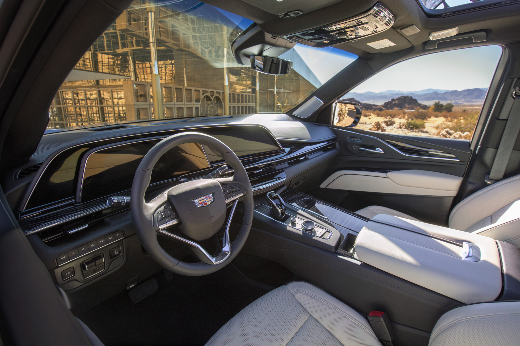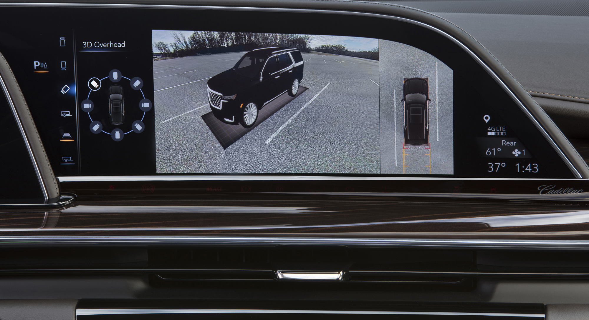 В числе опций имеются инфракрасная система ночного видения, зеркало-камера (картинка с камеры выводится на салонное зеркало заднего вида), развлекательная система для второго ряда с парой экранов по 12,6 дюйма, интерфейсом HDMI и USB, а также умением «зеркалить» смартфоны на Андроиде. Плюс эта система позволяет с задних экранов выбирать желаемые пункты назначения и передавать их водителю на центральный дисплей. Впервые в автоиндустрии свою технологию производителю поставила известная фирма AKG. Для Эскалейда она создала аудиокомплексы AKG Studio и AKG Studio Reference. Первый — это 14-канальный усилитель и 19 динамиков плюс сабвуфер, второй — три усилителя, 28 каналов и 36 динамиков.
