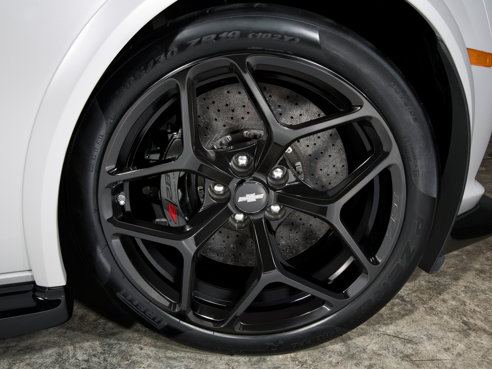 Вообще с лишним весом боролись с пристрастием. Ради четырёх килограммов экономии американцы переделали конструкцию задних сидений. Облегчённые колёсные диски диаметром 19 дюймов помогли скинуть 19 килограммов (и понизить центр тяжести на 33 мм), а ещё 12,5 кг — на счету карбонокерамических тормозных дисков Brembo. Плюс у новинки более тонкое заднее стекло, менее тяжёлый аккумулятор, упрощённая шумоизоляция салона и отделка багажника. В итоге Chevrolet Camaro Z/28 весит на 136 кг меньше, чем закрытая двухдверка Camaro ZL1.