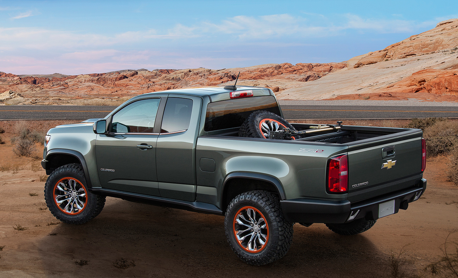 В Лос-Анджелес компания Chevrolet привезла концептуальную версию пикапа Colorado, получившую название ZR2. От стандартной модели шоу-кар отличается своей бездорожной «ориентацией»: у него другие бамперы и увеличенный на 50 мм дорожный просвет.