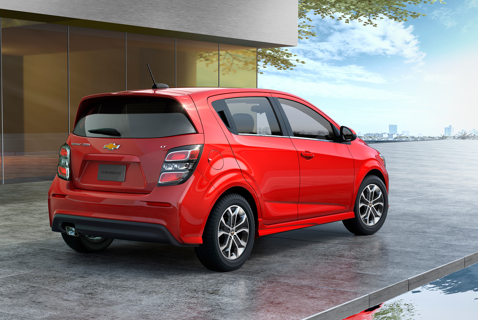 В стандартное оснащение входят 10 подушек безопасности, АБС, ESP, камера заднего вида и слежение за разметкой. Не показав фотографий салона, Chevy рассказала, чем же он обогатился. Бесключевой доступ, кнопка запуска двигателя, информационно-развлекательная система MyLink с семидюймовым дисплеем, поддержкой Apple CarPlay и Android Auto. Есть подогревы сидений и руля. Соники подключаются к Сети стандарта 4G LTE и раздают Wi-Fi на семь устройств. Всё это должно привлечь молодых покупателей. Сейчас более 20% приобретателей модели не достигли 35 лет, и почти 30% никогда ранее не пользовались продукцией GM.