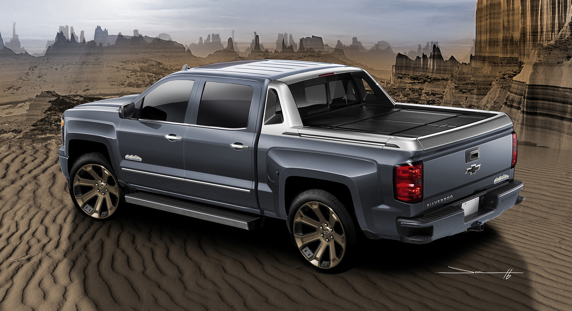 Пикап Chevrolet Silverado послужил основой даже не для одного концепта. Ранее мы рассказали о шоу-каре, построенном совместно с фирмой Carhartt. Но и Silverado 1500 High Desert заслуживает внимания. Автомобиль базируется на серийной версии с пакетом High Desert, а следовательно, оборудован запираемым и водонепроницаемым органайзером с несколькими отсеками под поклажу и трансформируемой перегородкой.