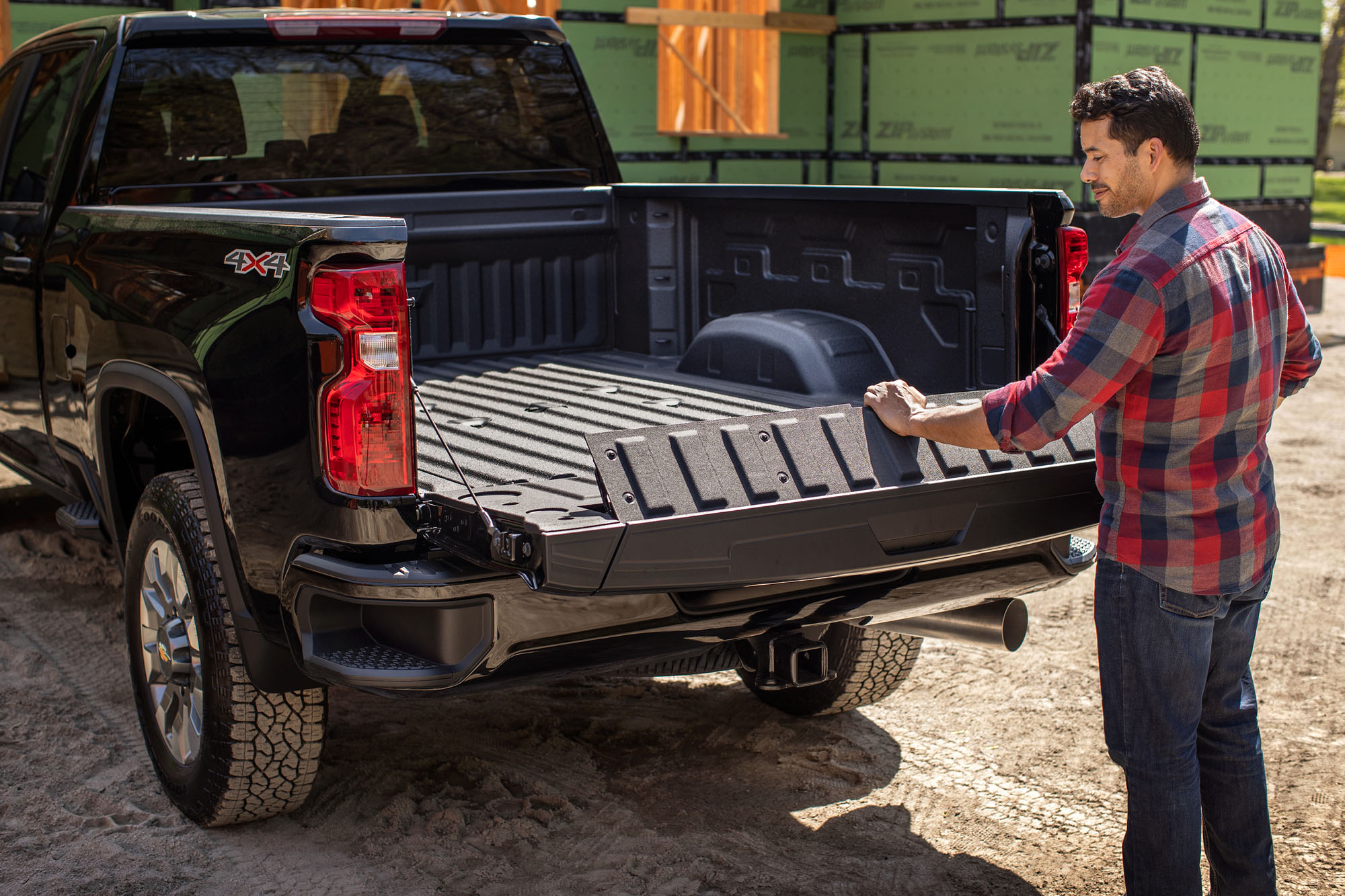 Многофункциональный борт Silverado практически повторяет систему MultiPro Tailgate у родственника GMC Sierra. А в Сиерре многофункциональный борт с 2021 модельного года сделан стандартным оснащением во всех комплектациях (ранее был опцией), кроме самой первой. В ней же он стал опцией за $595. В распоряжении Silverado HD — два двигателя: бензиновый атмосферник V8 6.6 (406 л.с., 629 Н•м) и турбодизель V8 6.6 (451 л.с. и 1234 Н•м). В паре с ними работают шести- и десятиступенчатый «автоматы» (бензин и дизель соответственно).