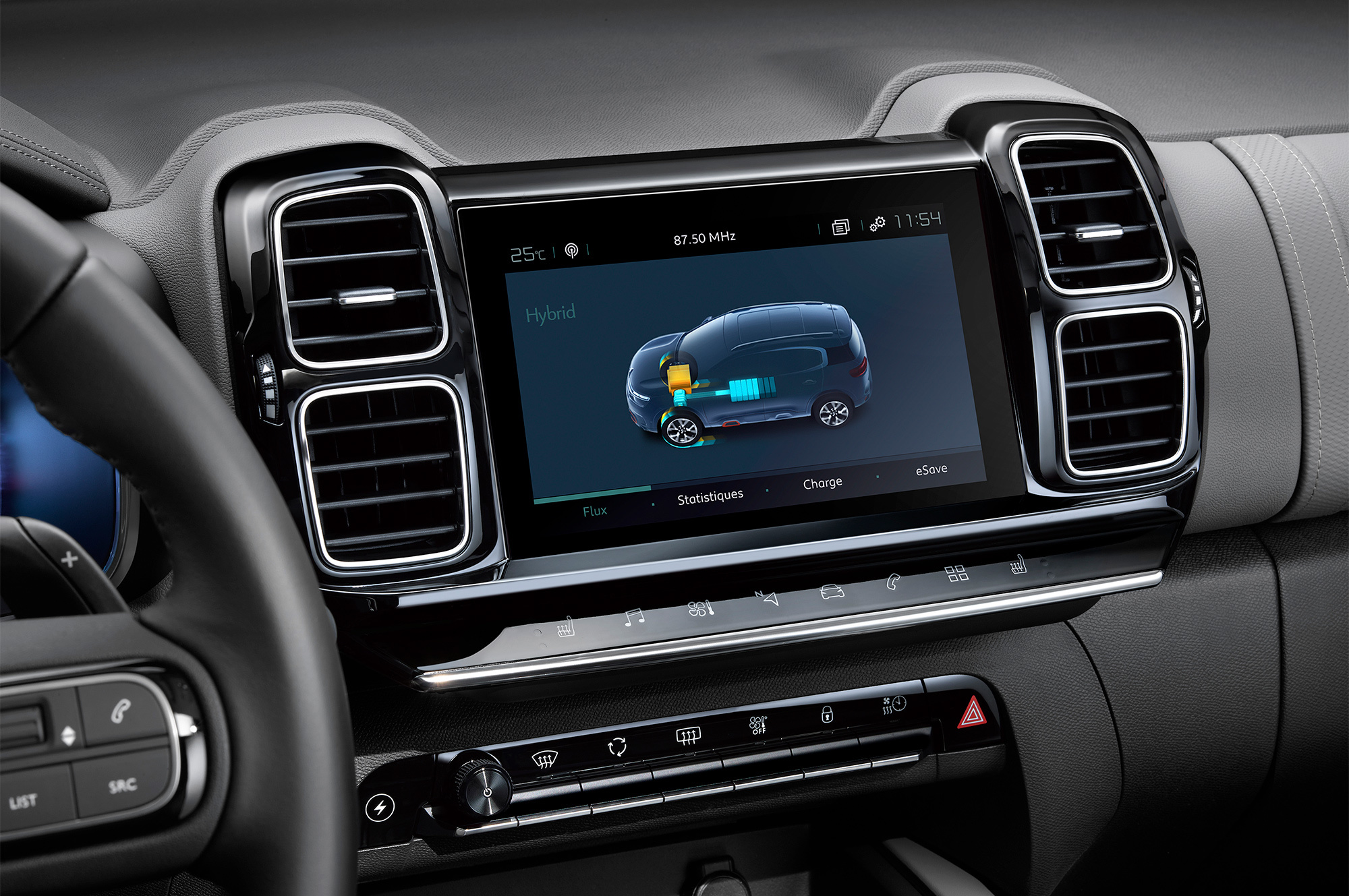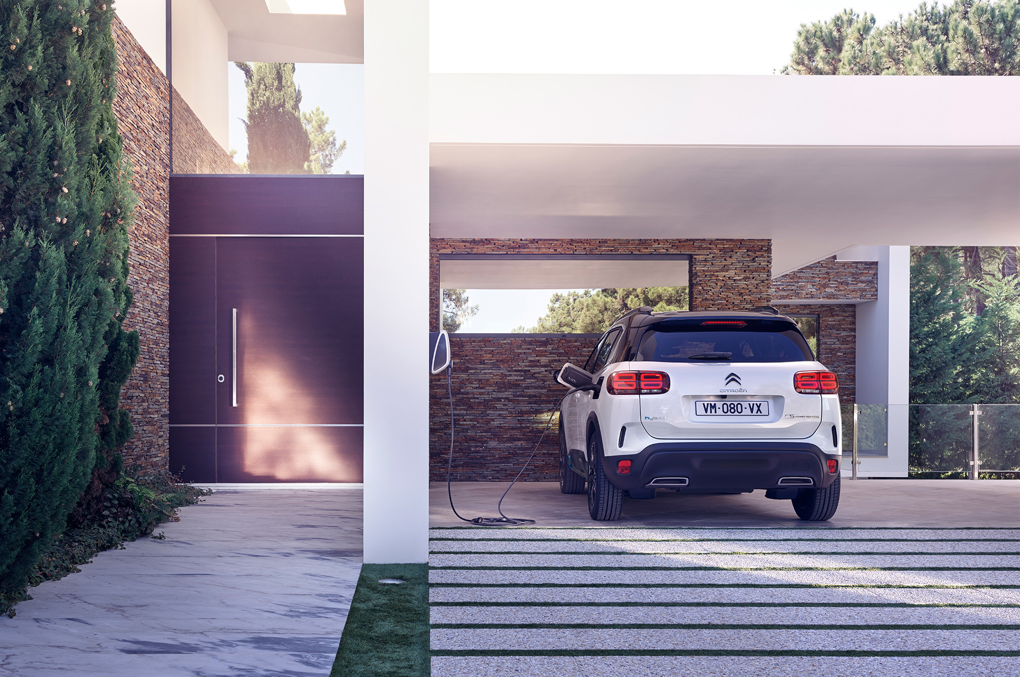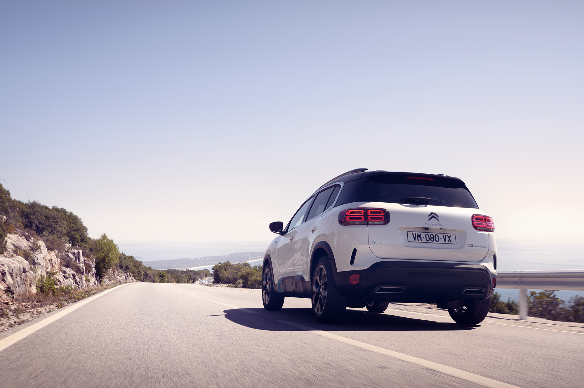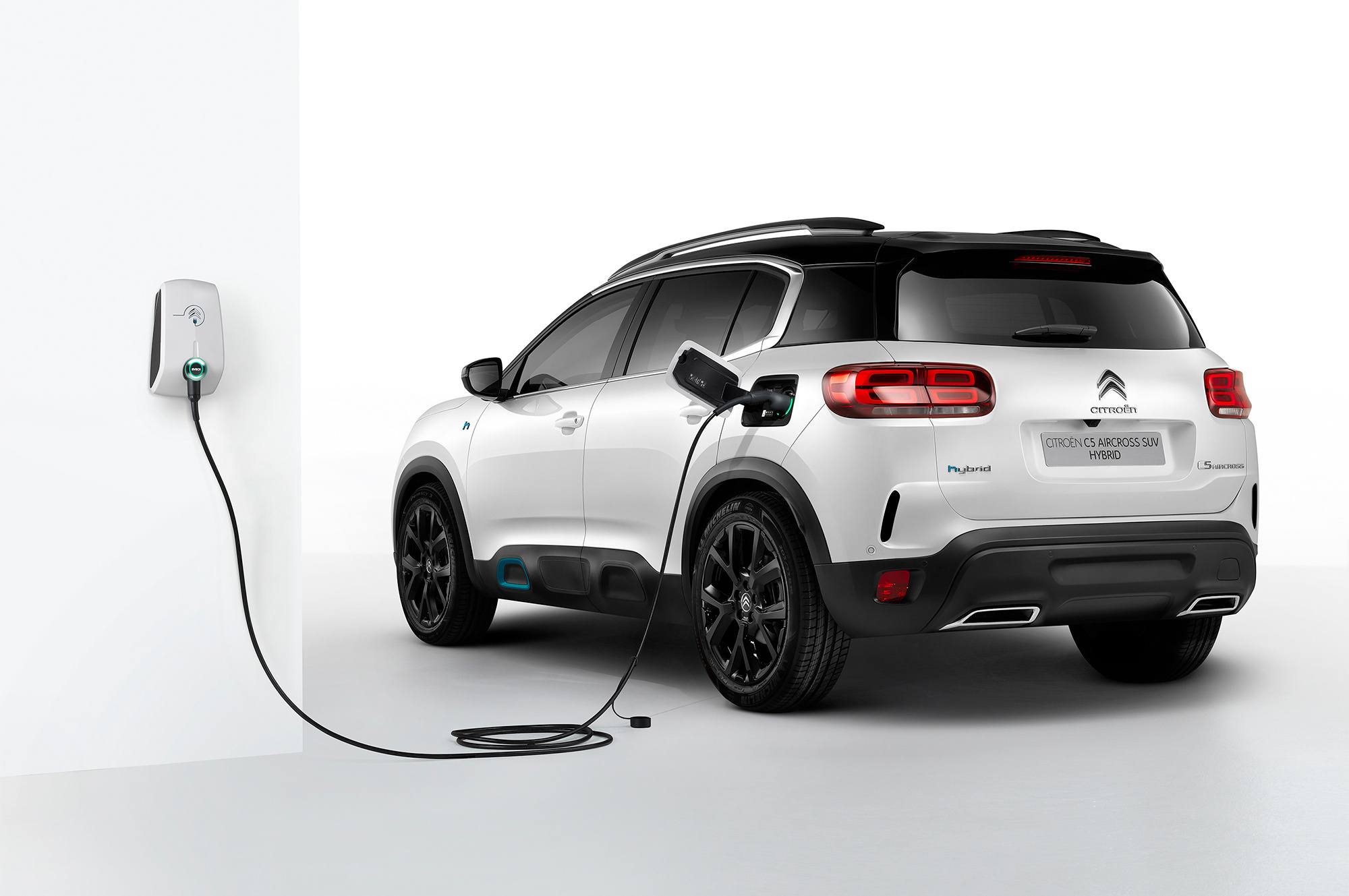 Партнёры Ситроена из Peugeot на сегодняшний день вывели на рынок уже пять гибридов. Среди них — 3008 Hybrid, с которым новый C5 Aircross SUV Hybrid делит платформу. Формально это первая подзаряжаемая машина марки, хотя Citroen уже электрифицировал DS 7 Crossback E-Tense 4X4. Aircross тоже использует бензиновую турбочетвёрку PureTech 1.6, но мощностью 180 л.с. в паре с единственным 80-киловаттным мотор-генератором. Комбинированная отдача силовой установки составляет 225 л.с. и 320 Н•м. Восьмиступенчатый «автомат» e-EAT8 передаёт момент только на переднюю ось.
