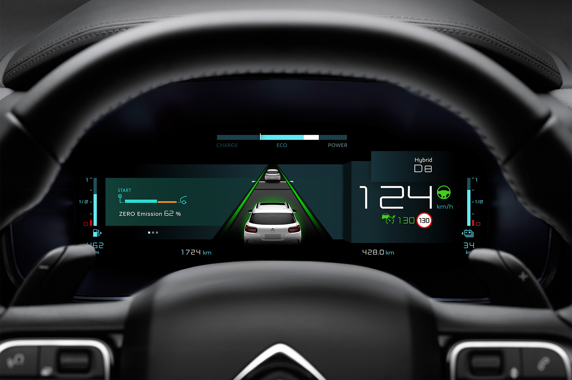 В чисто электрическом режиме Citroen способен набирать 135 км/ч. Причём до 30 км/ч автомобиль предупреждает пешеходов о своём присутствии специальным звуковым сигналом. По циклу WLTP обещан 50-километровый запас хода на электротяге. Гибридный режим подразумевает оптимальный баланс между ДВС и электромотором ради экономии топлива, а Sport задействует все резервы силового агрегата — как никак это мощнейший С5 Aircross. Кроме того, система позволяет запасать электроэнергию на выбранный водителем пробег (10 км, 20 или полный заряд), чтобы использовать её в городских зонах нулевых выбросов.